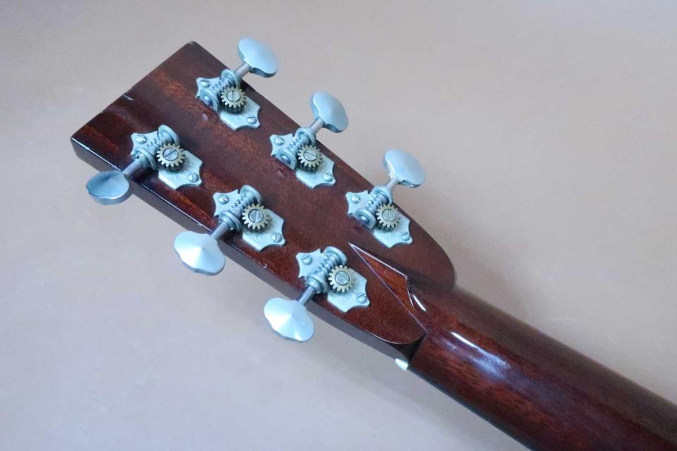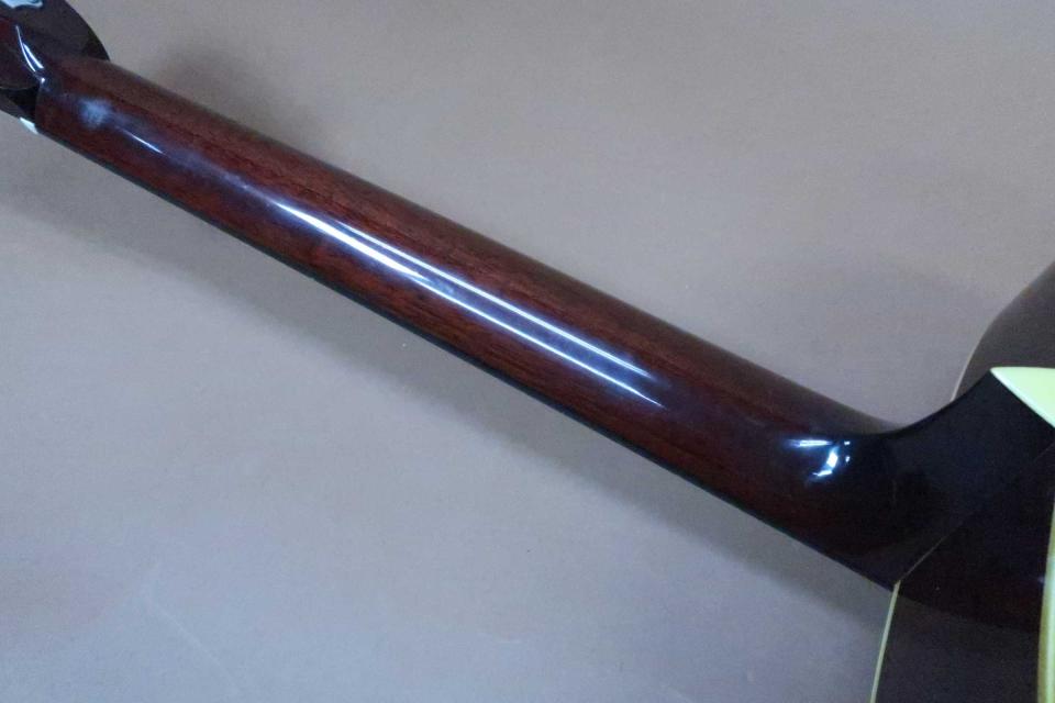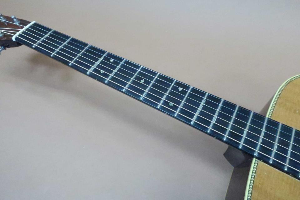 状態はペグの曇りが僅かに見受けられますが機能的には問題はありません。ヘッド裏の角に打痕と、この時期のCollingsは塗装が薄くトップに軽い打コンが所々見られますが、ぱっと見は目立つ感じではありません。またブリッジ下に軽いポツ打痕と極薄のラッカー塗装でセンターシームに表面的な塗装の引きが見られましたので工房でリペア済です。 サイドも綺麗で目立つダメージは見受けられません。バックは打痕は少なく中央辺りに線傷が見られますが酷く目立つ感じではありません。。ネック裏は綺麗で演奏性も良くフレットも8分目程度は乗っていると思います。ネックグリップは緩やかなVシェープタイプで握りやすく、弦長約645mm、ナット幅約43mm、弦高は12F6弦で約2.3mm、1弦約1.5mm、サドルにの余裕も約3mmありネックを含めプレイヤビリティは良好です。80年代 Martin ハードケースも付属しております。現在のメーカー税込定価¥1,375,000のハイエンドギターです。初期ラッカー塗装モデルで表面的な塗装の引アリの訳ありでリペア工房にて調整済みのセール特価品です。是非この機会にご検討を頂ければ幸いです。