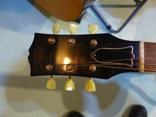このギターは 924氏の企画で なんで 3ピースなのと 大反対をくらい 1本だけ作った マホガニーは硬質の産地不明のマホガニー 1ピースマホガニーではない が 単板の良質なものだ