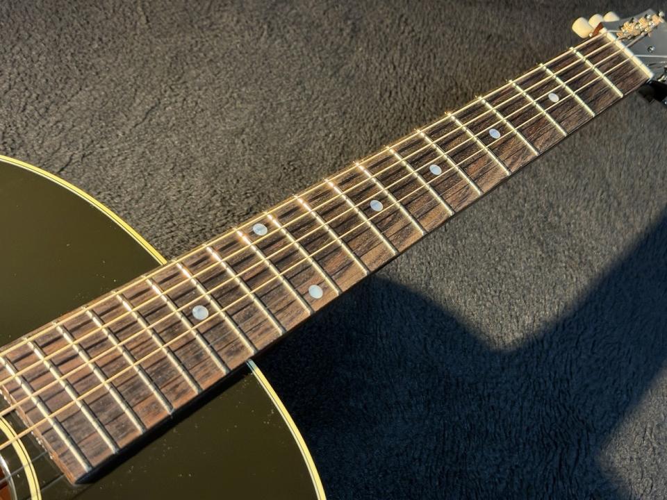 LG-2の初年度はJ-45と同じく1942年。J-45のダウンサイジングモデルとして登場。小振りで抱え込み易いことから当時はレディース・ギターと呼ばれていたとの記録もあります。