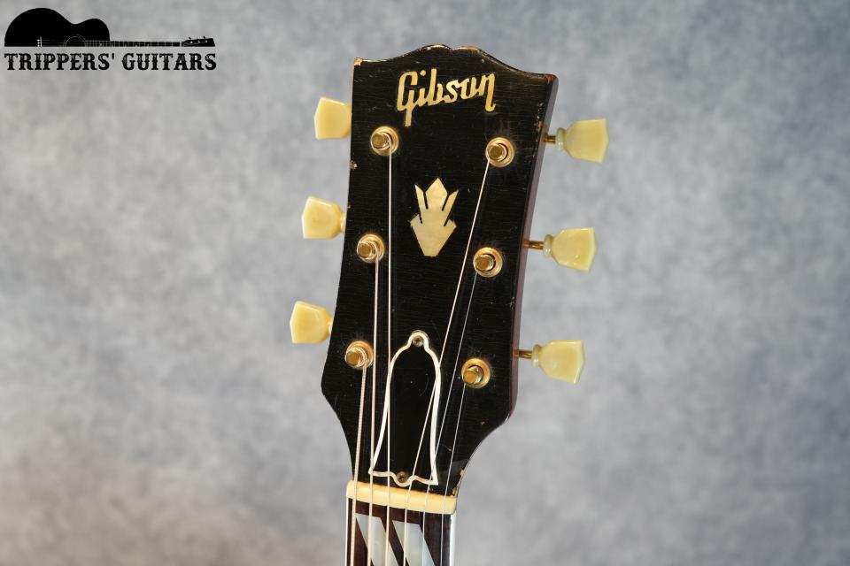黒いヘッドにはパールのGibsonロゴとクラウンインレイ。