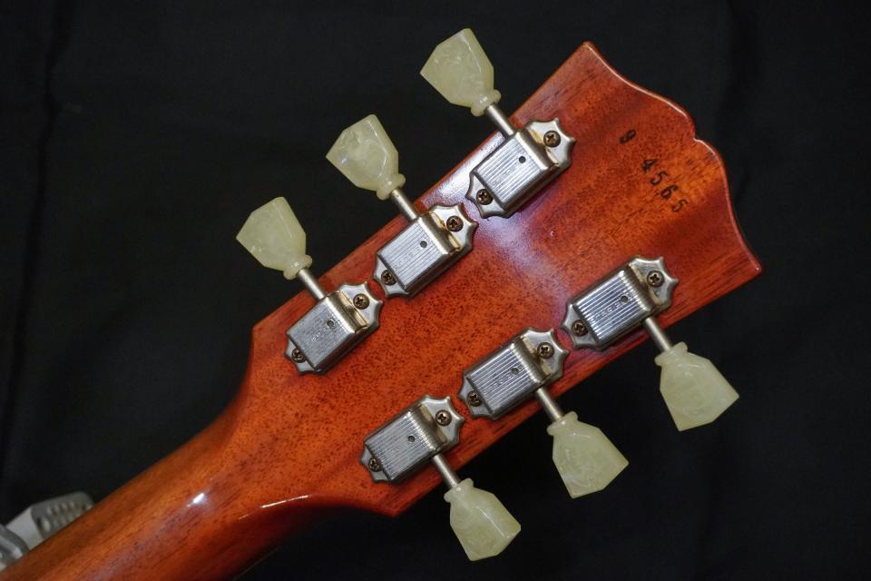 本機はギブソン創業120周年記念期に製作された個体で、厳選された材を使用したHand Select仕様となります。トップには美しいフレイムメイプルが採用されており、Double Dirty Lemonカラーと相まってヴィンテージライクな非常に雰囲気の良いルックスです。