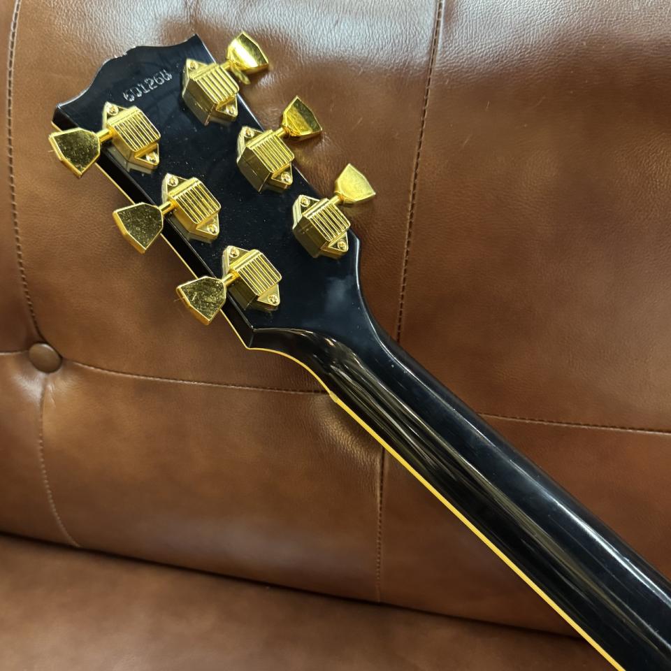 1968年製のレスポール・カスタムは、いくつかの点で1950年代のモデルとは一線を画していました。先ずマホガニーボディの代わりに、マホガニーバックとソリッドメイプルトップ構造が採用されました。また、それまでのカスタムが3ハムバッカーであったのに対し、2ハムバッカーとなり、ピッキングエリアのクリアランスが得られました。また、ペグヘッドの角度は14度になったことで弦の張力が軽減されています。