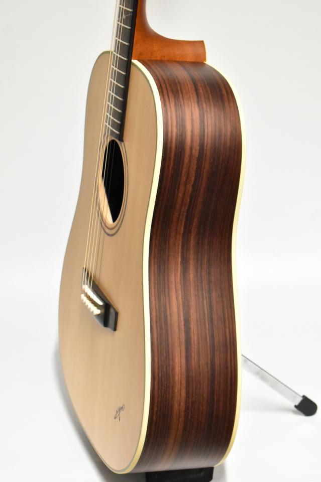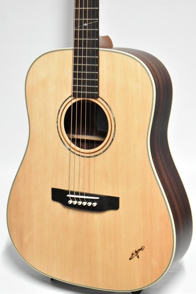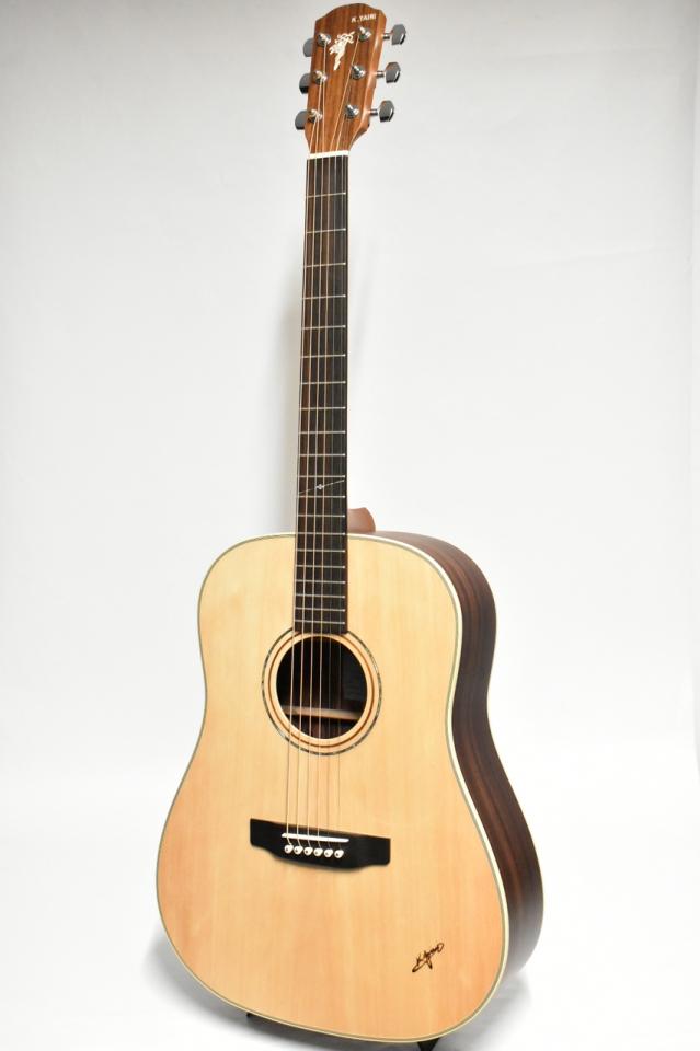 トップはスプルース単板で材サイド&バックはローズウッド合板材を使用、ネック材にはマホガニー、指板とブリッジには希少材のエボニーを採用しております。艶消し仕上げ、透明ピックガード、表板にはK.yairiの焼き印あり、ヘッドにはシリーズの特徴でもあるエンジェルロゴが採用されているのもポイントです。