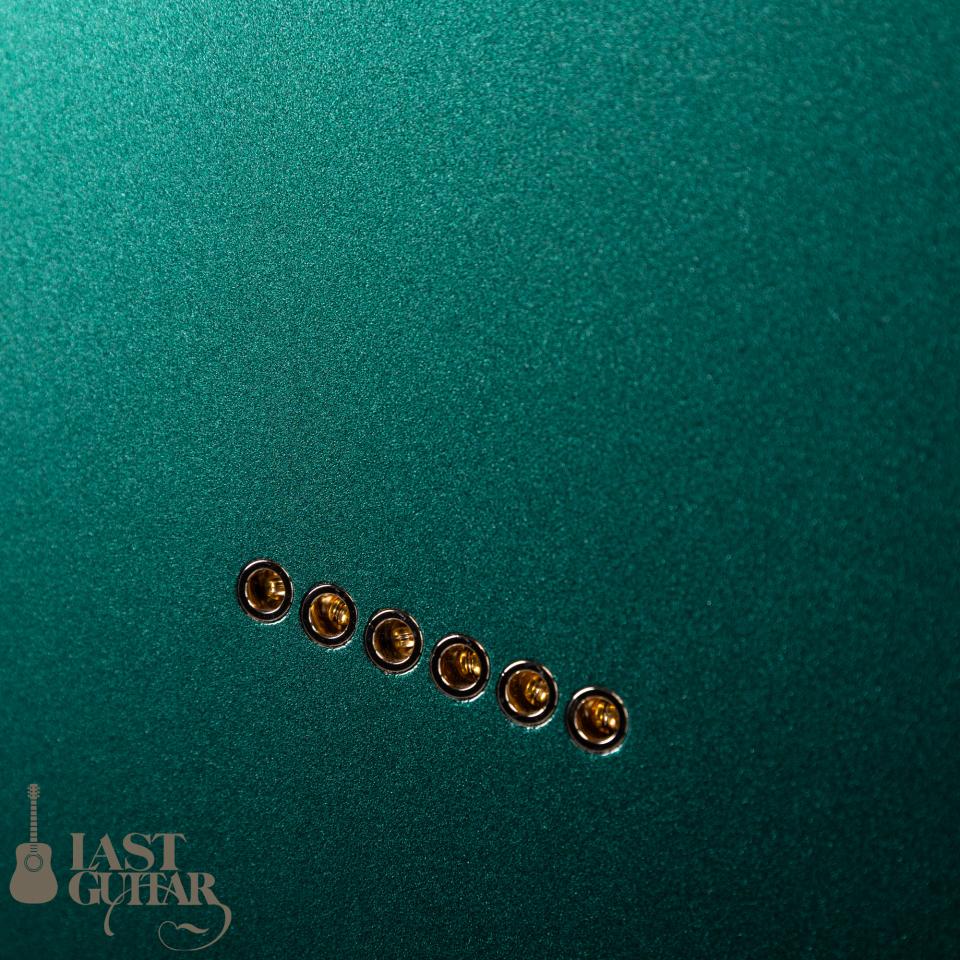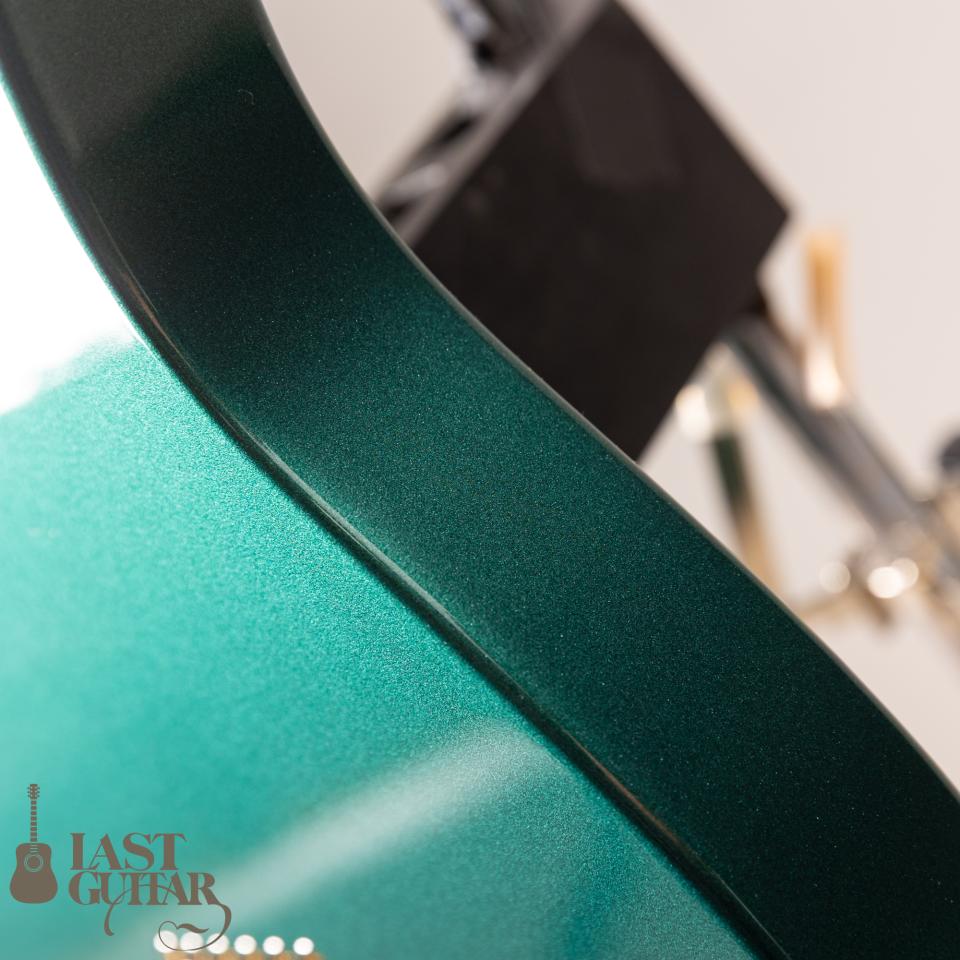 SGM(シャーウッドグリーンメタリック)カラーがローズ指板と相まって非常にシックなルックスをしておりステージ映えも間違い無いです。ボディーに開いているFホールも可愛らしくかっこ良いです。
