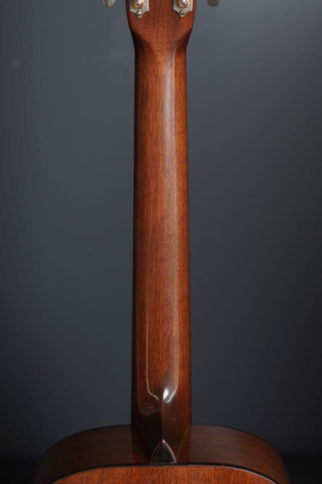 指板のポジションマークは、5Fから15Fまでに入る戦前スタイルの18スタイルのスモールドット。