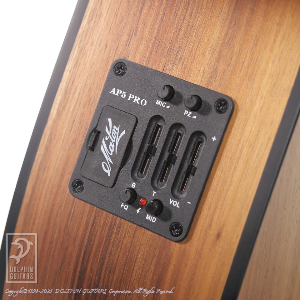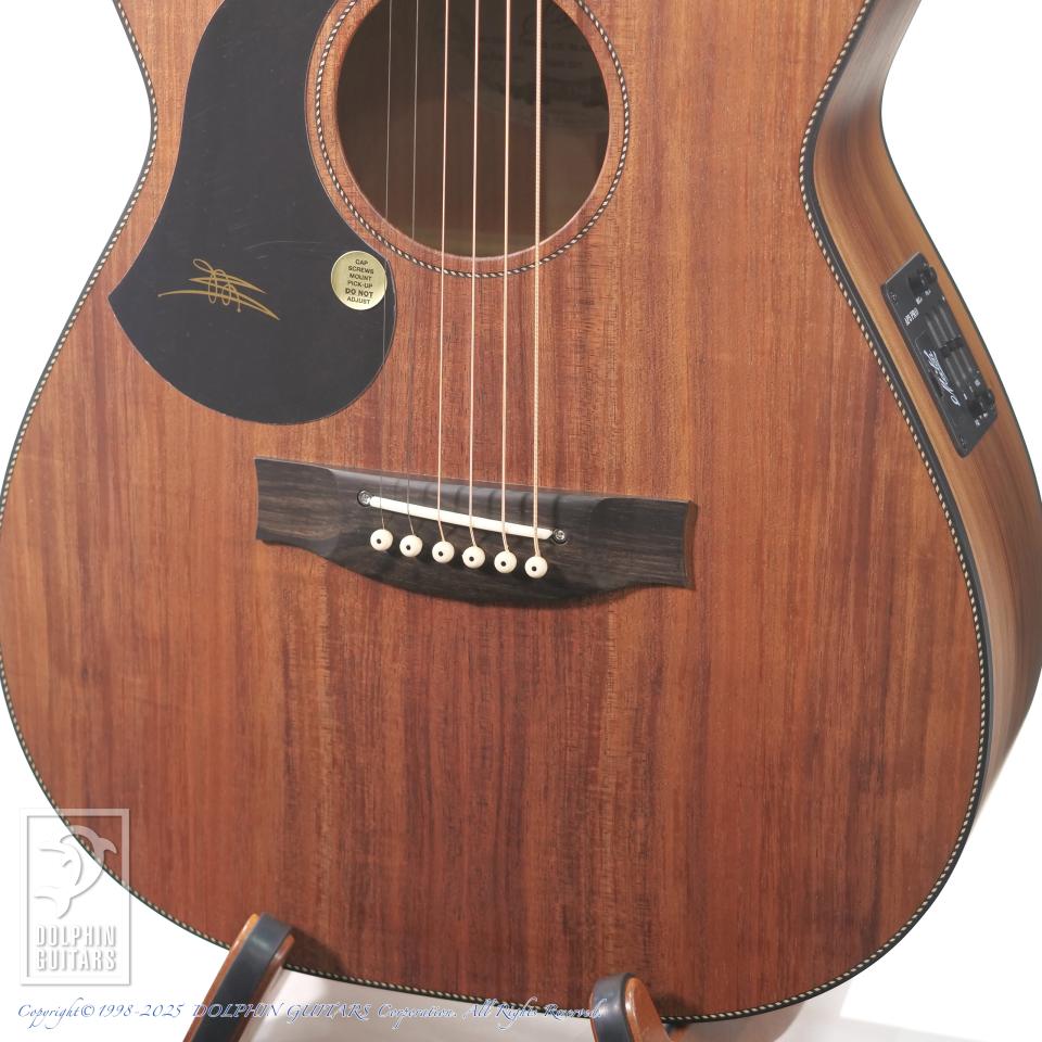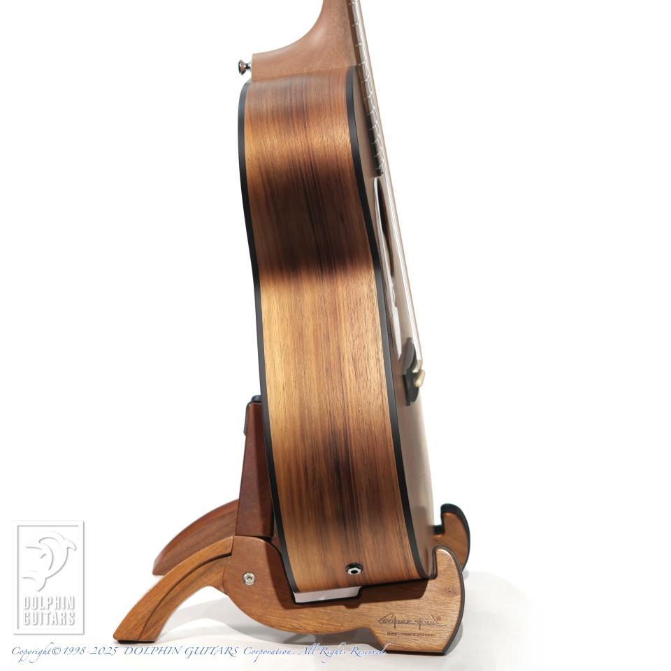 ボディ幅は000と00サイズの中間でありながら、ディープボディである為、抱え易い小柄でありながらも豊かなベース音を生み出し、極限まで高められたセットアップ、ローポジションからハイ・ポジションまで、指板に吸い付く様な弾き心地がテクニカルなプレイをサポートします。