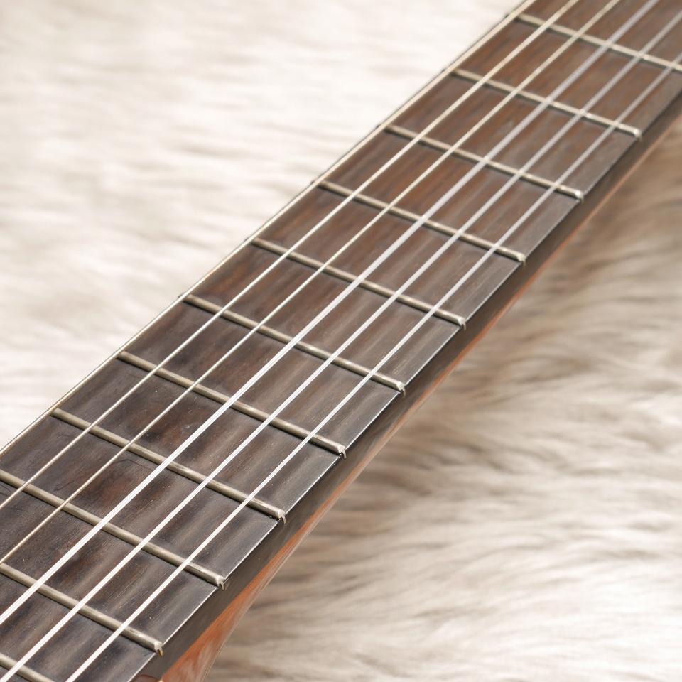 フレットにバリ、表面板の打痕、パーフリングの欠けなどが見受けられますが、弦高等は良好です。