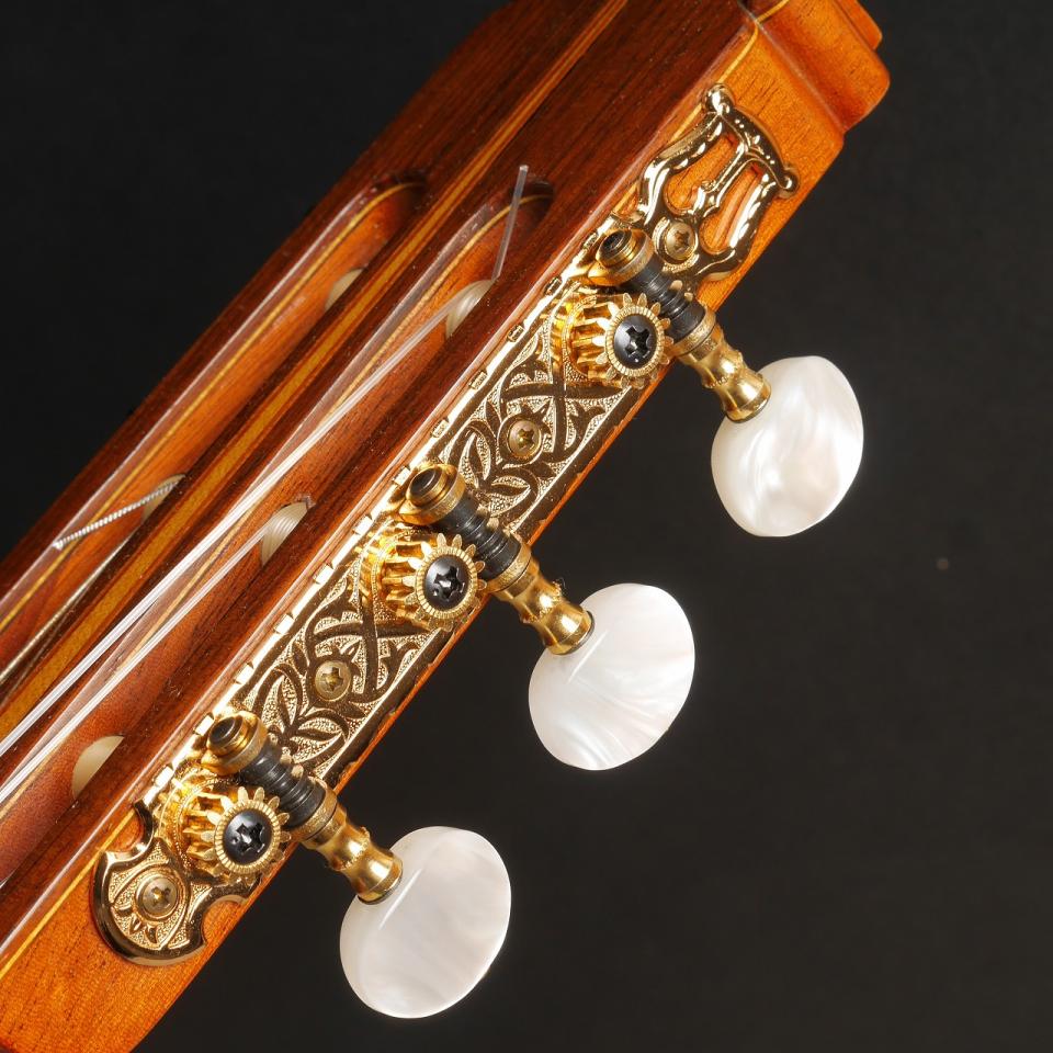 ギター製作の本場であるスペインに渡り、伝統的な技法を深く学んだ経歴を持ちます。その作品にはスペインギターの情熱的な響きと、日本人製作家らしい緻密な仕事ぶりが完璧なバランスで共存しており、多くのプロ奏者や愛好家を魅了し続けています。
