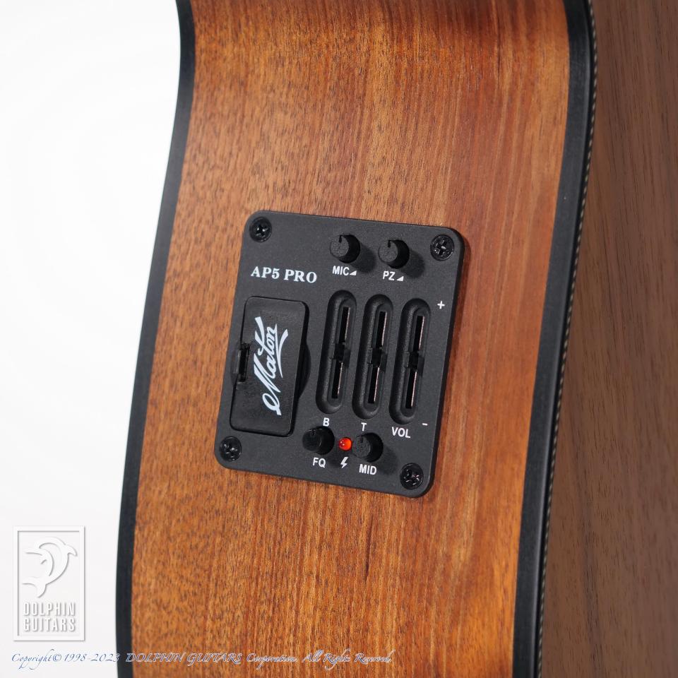 ボディ幅は000と00サイズの中間でありながら、ディープボディである為、抱え易い小柄でありながらも豊かなベース音を生み出し、極限まで高められたセットアップ、ローポジションからハイ・ポジションまで、指板に吸い付く様な弾き心地がテクニカルなプレイをサポートします。
