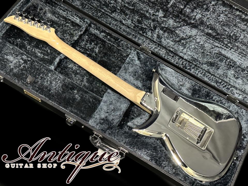 今回ご紹介させて頂くのは、そのTALBO Secret Factoryプロデュースの新品のTALBOをベースに、Joe Satrianiの愛用するIbanez Chrome boyと同じ工房にてクロームメッキ塗装が施されたイケベ楽器が企画した特注ワンオフ製作のプロトモデル。Tokaiオリジナルの仕様として販売された個体ではない為、新品販売時よりUSED扱いながら、内容は新品と変わらず、ファーストオーナー様がコレクション目的にて大切にされてきた未使用の新品同様コンディションの一本になります。