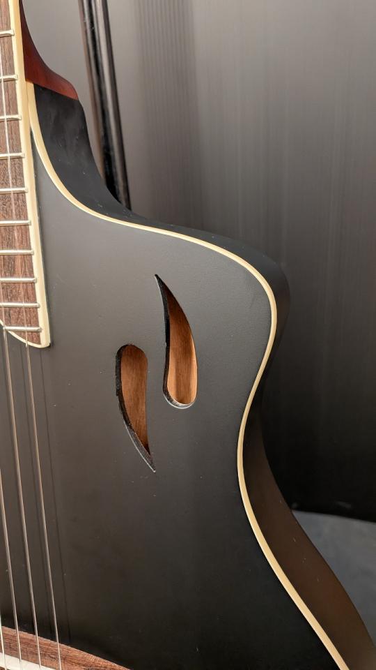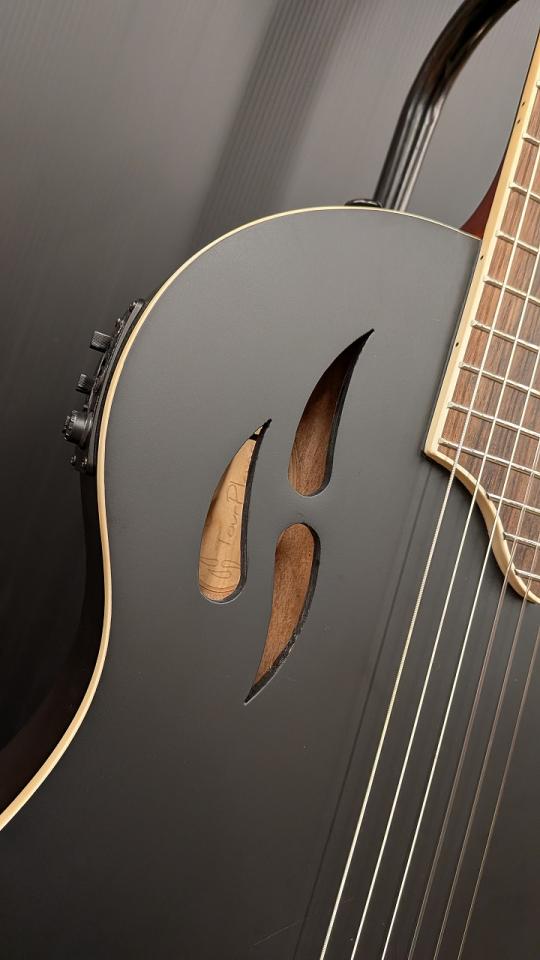 ボディ上部には雫型のサウンドホールも備えております。
