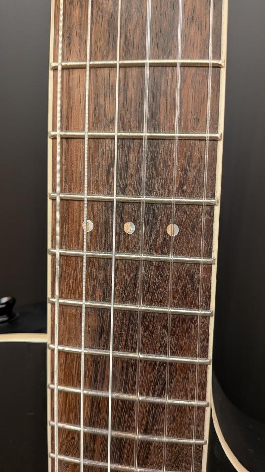 指板12フレットには月の満ち欠けを表現したムーンインレイがさりげなく施されております。