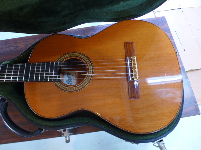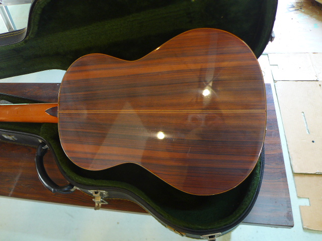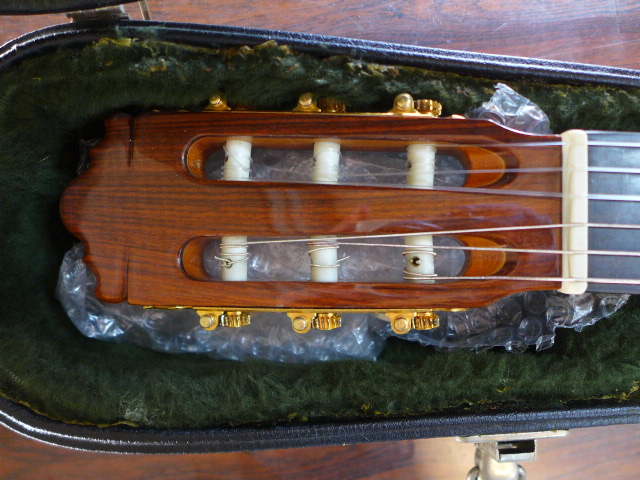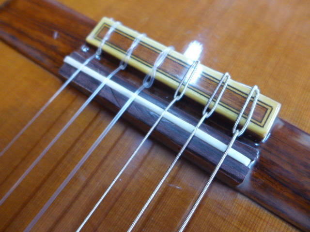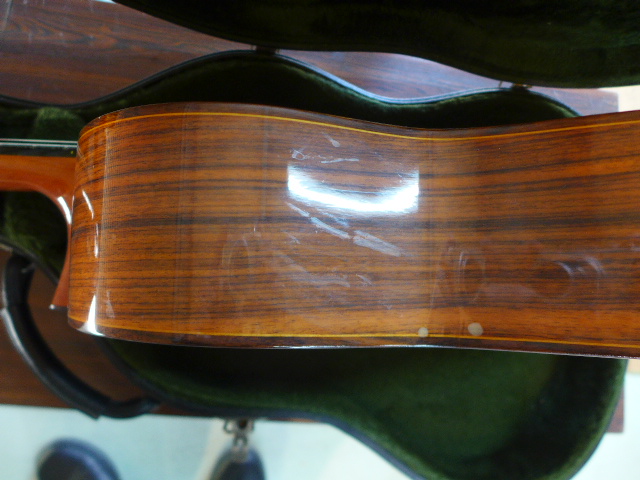 ブリッジに加工 後あり 弦高はガットギターびしては 低めだ