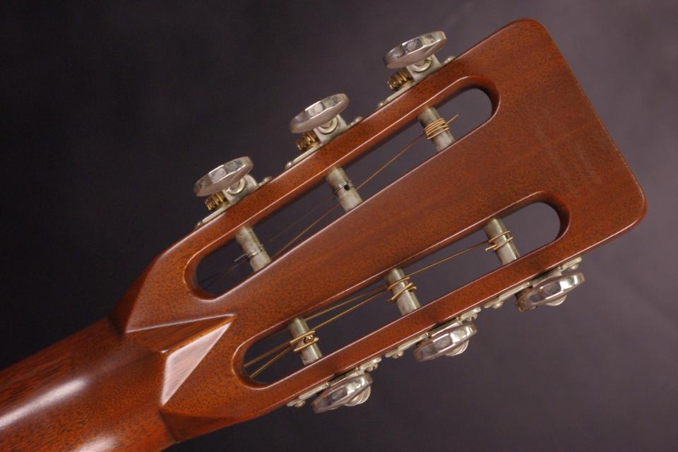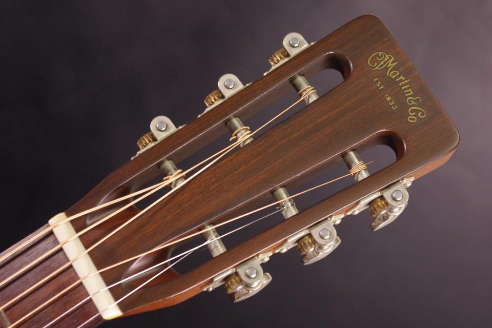 2004年製のマーティン00-21JPTC CTMが入荷しました!!トップはシトカスプルース、サイドバックにはインディアンローズウッドを採用、12フレットジョイント、スロテッドヘッドが最大の特徴で抱えやすく指で美しく弾きたくなる1本です!!べっ甲柄ピックガードに交換されていますがウェバリーペグ、ブリッジなどその他の主なパーツはオリジナルで残っていました。サドルは牛骨材で製作していますがオリジナルも保管しています。ネックヒールヘはストラップピンが打っています。ピックアップの取り付け加工はございません。細かい傷は少々ありますが年式の割には使用感は少なく美品と言ってよいでしょう!演奏性、サウンドも優れていますのでこのスタイルで探していた方にとっては一押しです!ナット幅は約47mmの幅広いグリップになります。ネックのアングルも適正でトラスロッドの動作も問題なく機能しています。フレットの減りも少なめで長期で気にしないでお使いいただけます。弦高は12フレット6弦側で約2.5mm、1弦側で約1.7mmの高さでハイポジションまで押さえやすく調整しています。ブリッジからサドル残もありお好みに合わせた微調整にもお応えいたします。ショートスケールですがスロテッドヘッドのため各弦にしっかりとハリがあり反応が素早く軽いタッチで心地よく伸びてくれますよ!ローズウッド特有の深み、華やかな高音が魅力!!是非この機会にお試しください!オリジナルマーティンハードケースき