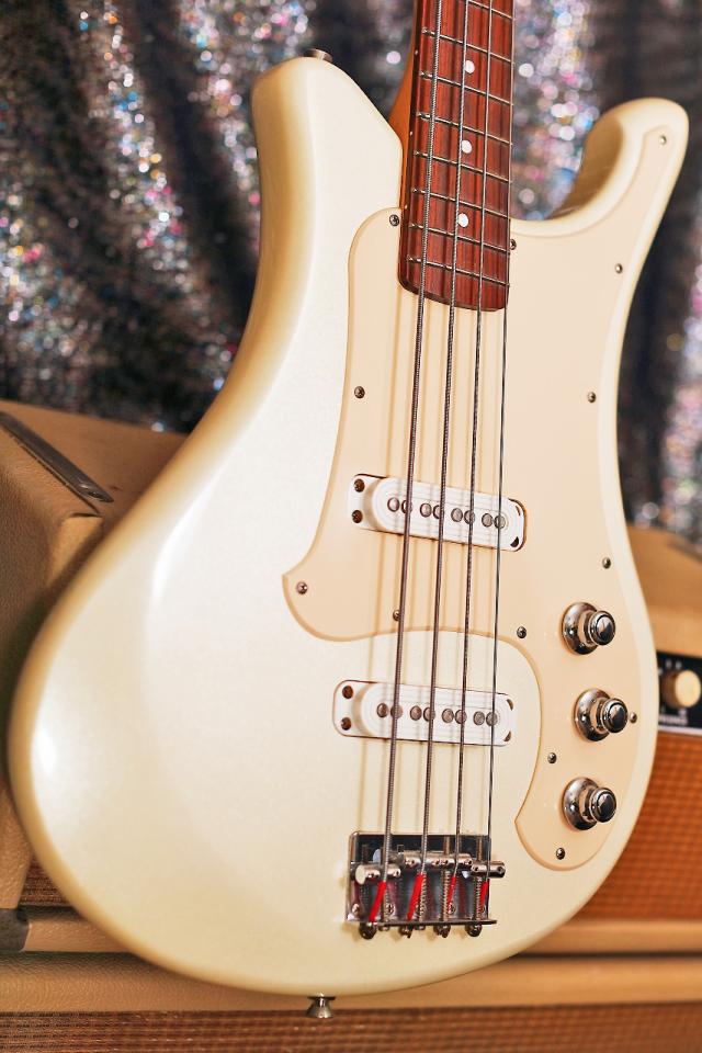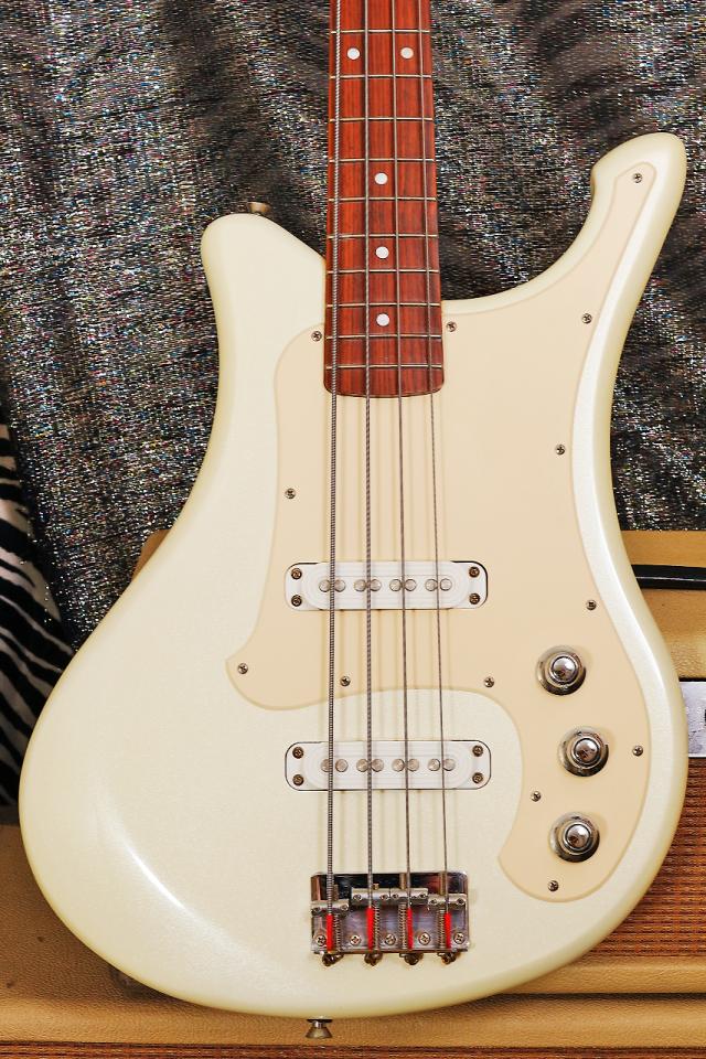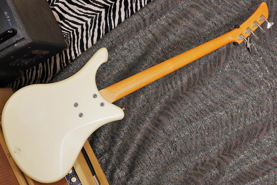SBV-500はJ-Jタイプのピックアップを2発搭載したモデルですが、今回入荷した「パール・スノー・ホワイト」というカラーはSBV-500が発売された2001年のカタログにのみ掲載されていて、翌2002年のカタログではカラー・ラインナップから外れてしまっているというレア・カラーです。