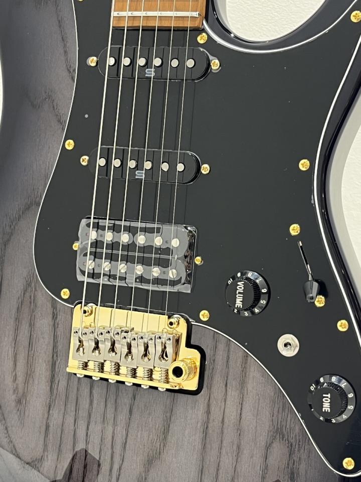・ハードウェア: 滑らかなアーミングを可能にするGotoh製 T1802ブリッジと、弦交換が容易なマグナムロックペグを採用。