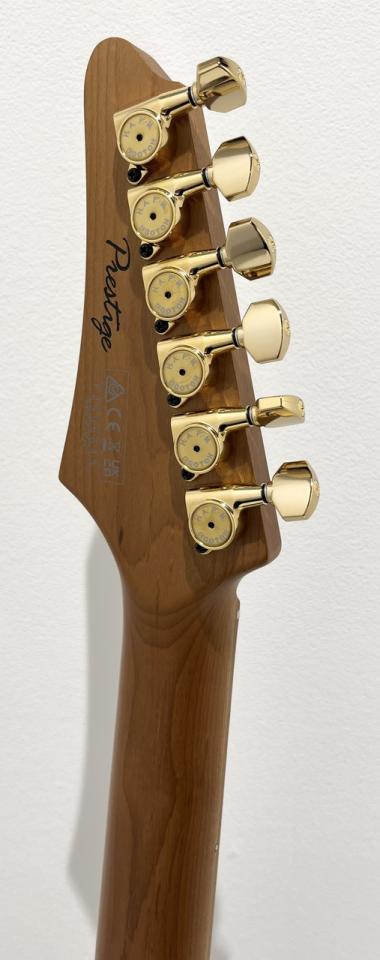 ルックス面でも、美しい木目を活かしたTri-Fade Burstカラーに、Prestigeシリーズとしては初採用となるゴールドハードウェアを組み合わせ、気品溢れる一台に仕上がっています。