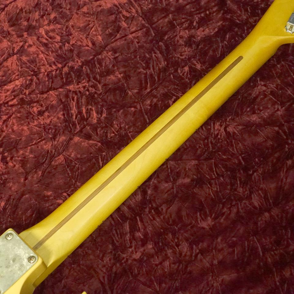50sのテレキャスターを彷彿とさせる、バタースコッチ・カラーにブラックピックガードを装備したSGシェイプのボディはアッシュボディに、メイプルワンピースネックをボルトオンしたウッドマテリアル。