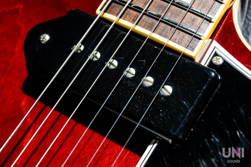 フルアコ構造ですがボディが薄いうえにP-90なので、ジャズにはちょっと向いていないかもしれませんがクランチ時のサウンドが最高です。