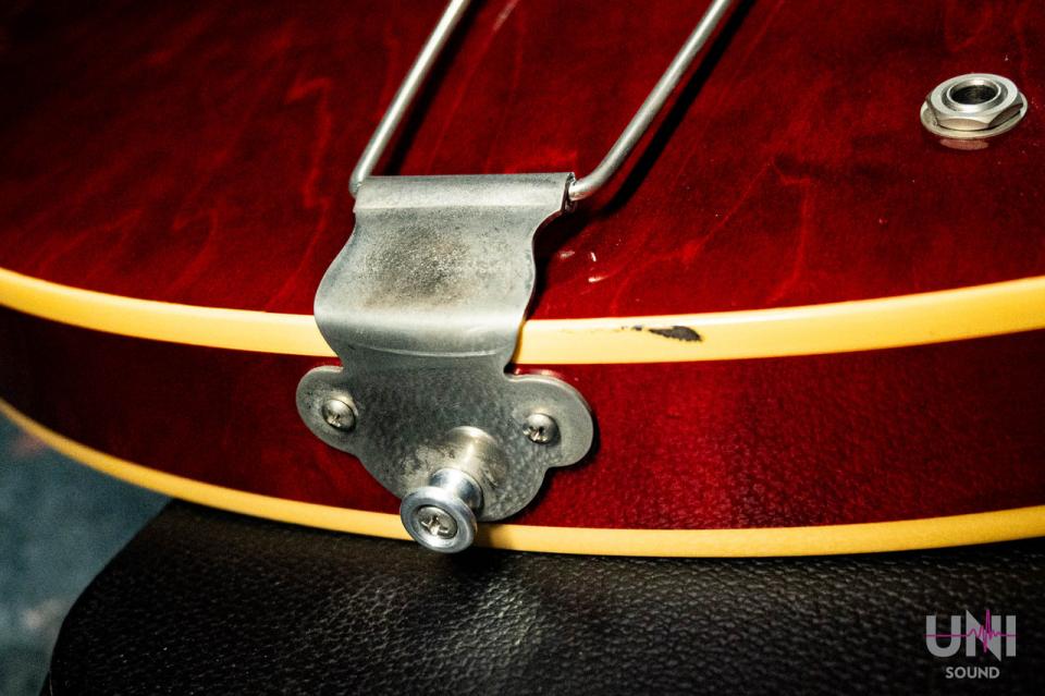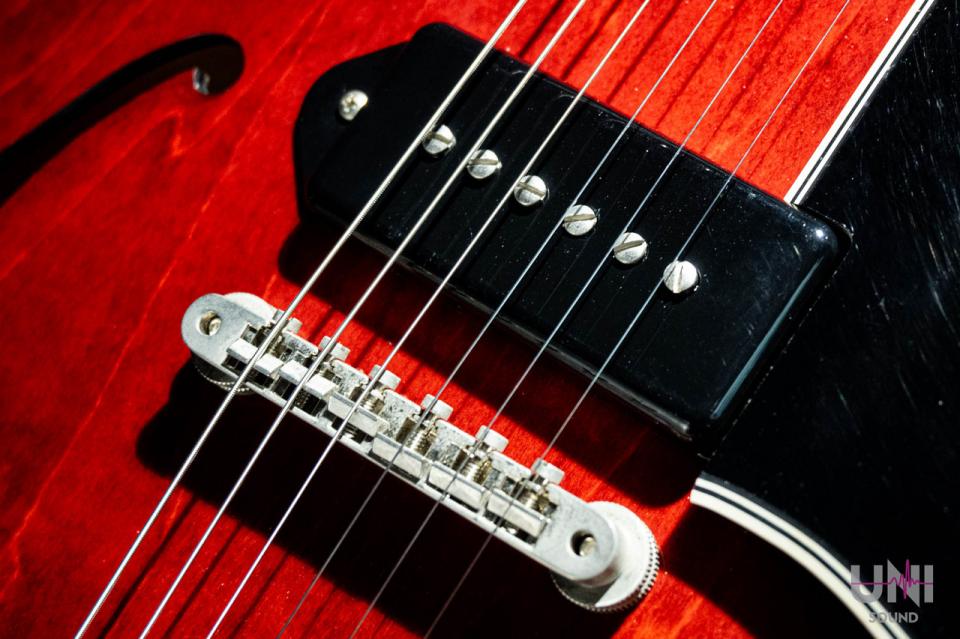構造はセンターブロックのない完全なフルアコ構造となっており、ピックアップはP-90をマウント。このモデルは2つマウントされていますが、ワンピックアップのモデルもあります。この構造や仕様は完全にカジノと共通しております。