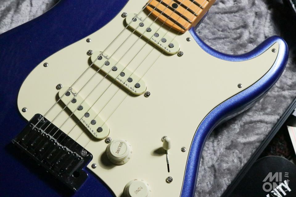 10インチから14インチへと変化するコンパウンドラジアス指板、22本のミディアムジャンボフレットにより、スムーズかつ正確なソロプレイが可能。さらに、「Ultra Noiseless Vintage」ピックアップと高度な配線オプションにより、ノイズを抑えつつ幅広いサウンドバリエーションを実現します。