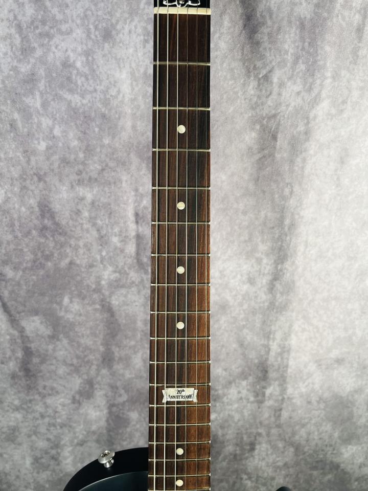 メイプルトップにコンター加工が施され、12フレットには「120th Anniversary」のインレイがあしらわれた、特別感あふれる一本です。