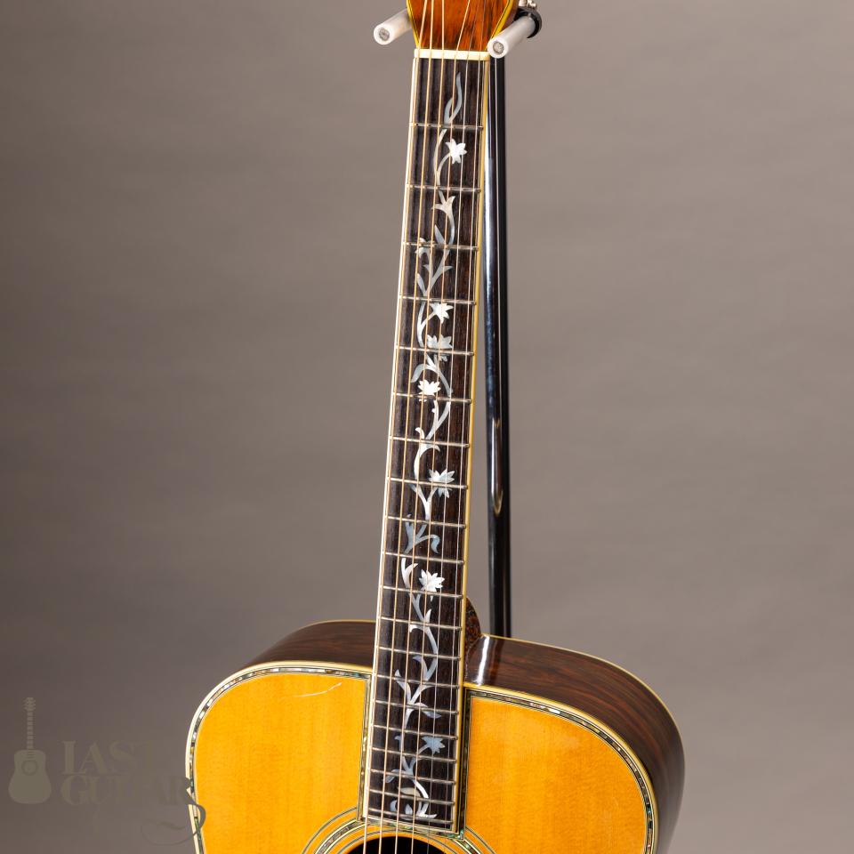 JAPANESEレアなK.Countryの高級モデル!!豪華なハカランダのサイド&バック仕様。丸ヘッド、縦ロゴ、ネックヒールに彫刻が施されるなど味わいがあります。