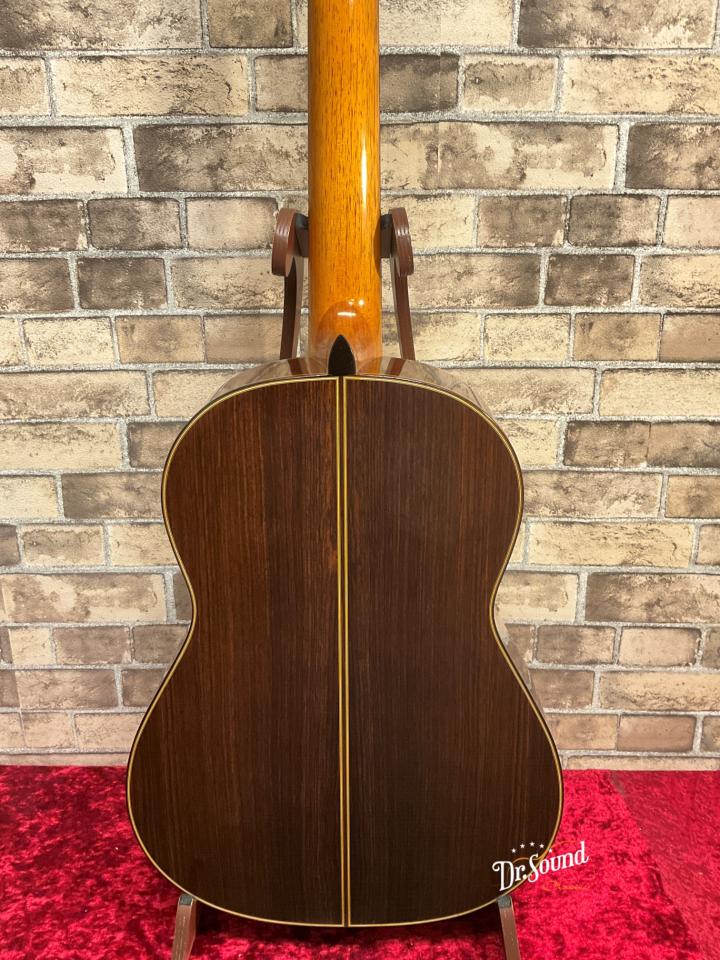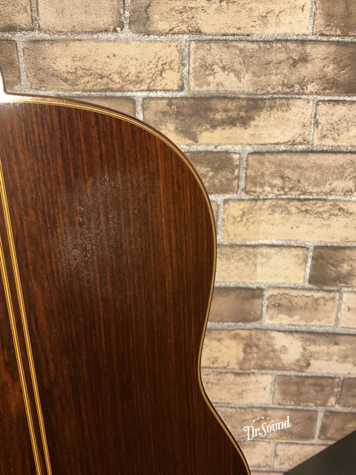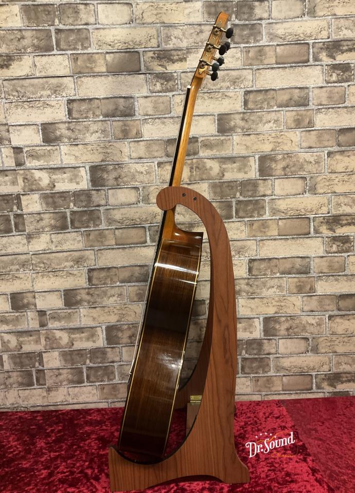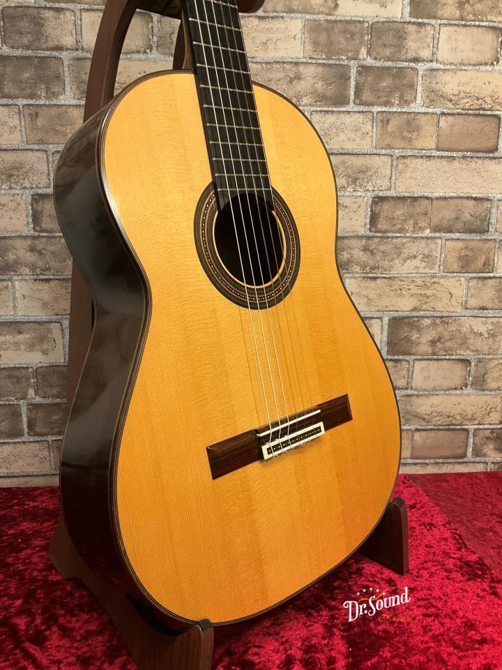 ほんのわずかな小さいキズや、裏板の塗装のくもりなどはございますが、全体的に綺麗な状態です。ラティスブレーシングを採用した現代的な製作技法によっていますが、オーストラリア系のラティスのギターのような大音量ではなく、すっきりしたクリアなトーンでそれぞれの音の粒立ち良く、輪郭のはっきりしたサウンドです。もちろん音量も充分にあり重厚な低音にも迫力がありますが、決して大味にはならず、繊細な表現にも対応できるギターです。
