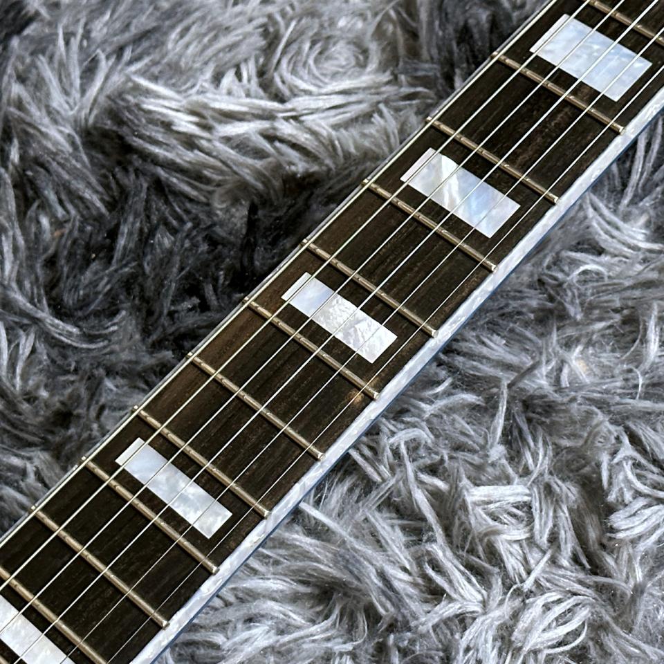 塗装が薄いということもあり、アッシュ材ながら重量は3kgを切っています。ピックアップは定番のTB-4で王道のハードロックサウンドをアウトプットしてくれます。ミニSWでコイルタップもできます。リバースヘッドによる通常ヘッドとのテンション感の違いも特徴で、巻き弦側のテンションの強さが低音のヌケの良さに繋がっており、逆にプレーン弦のテンションが少し柔らかになるので、メロウなハイトーン、かつチョーキングや運指のしやすさを感じます。