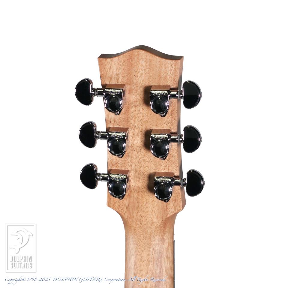 オーストラリアンブラックウッドはアカシア属の植物であり、ハワイアンアンコアも同じアカシア属。木目や色合いも非常に似ており、明るくハリのあるサウンドのコアに比べ、ブラックウッドはローミッドが強調され、ややダークな印象で、他のスプルーストップのモデルとはハッキリと異なるサウンドキャラクターです。