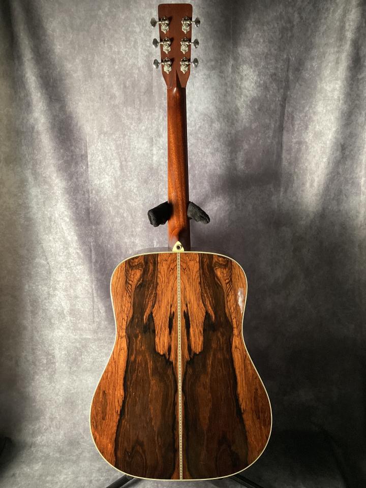 トップには単板スプルース、指板にはエボニーを採用。さらに特筆すべきは、サイド&バックに希少材ハカランダを使用している点で、素材面でも非常に贅沢な一本となっております。