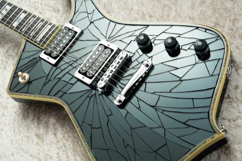 ●まさに「割れ鏡」、Paul Stanleyモデルであることを強烈に主張する、ボディTOPに施した ”Cracked Mirror” (※)