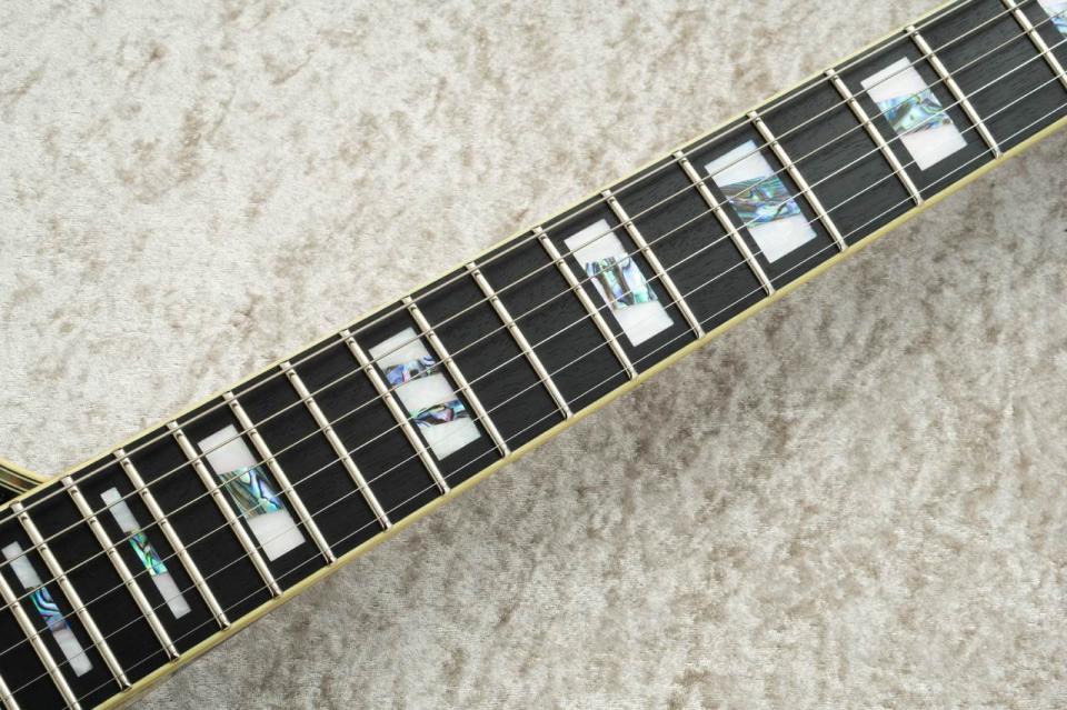 - Fretboard Bound Ebony fretboard w/Acrylic & Abalone block inlay