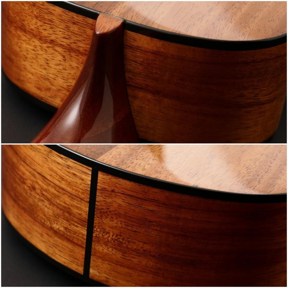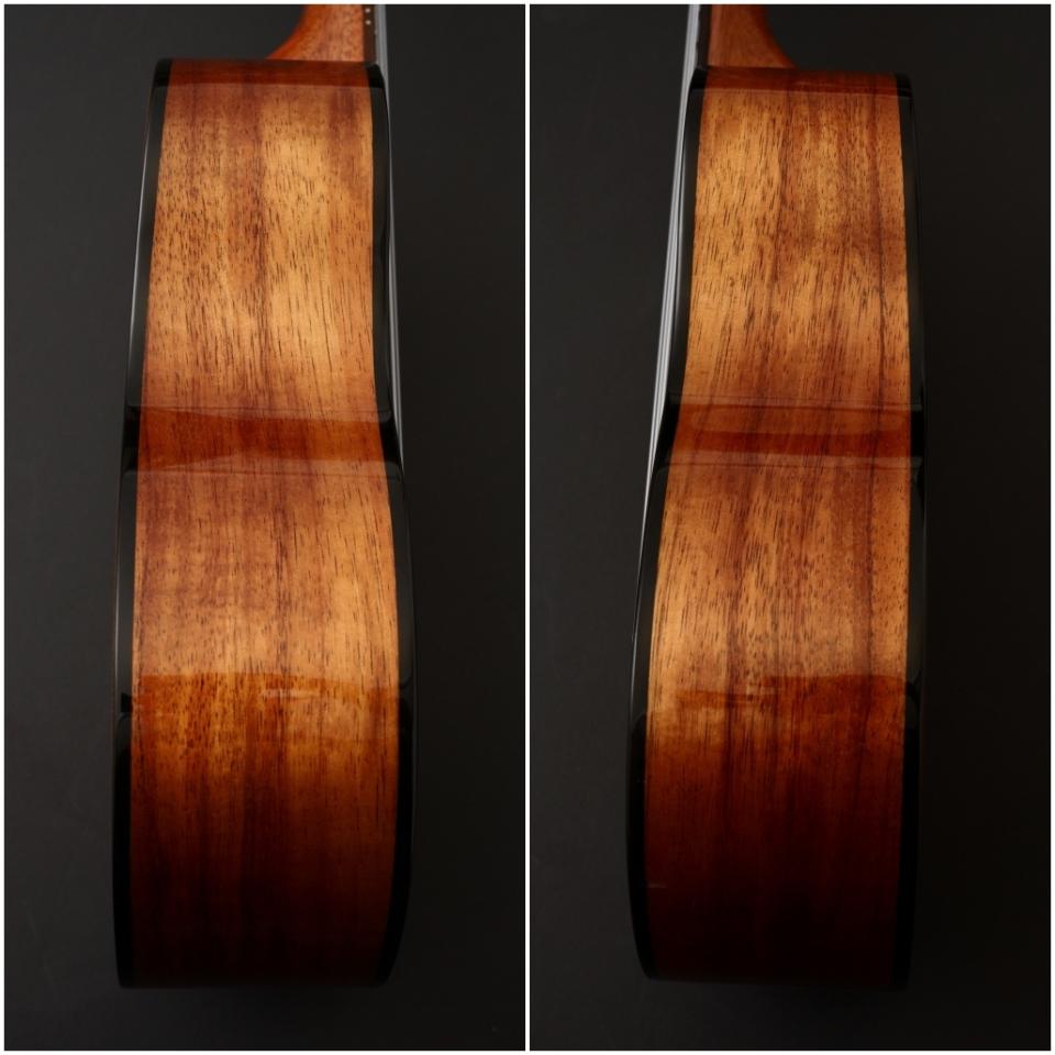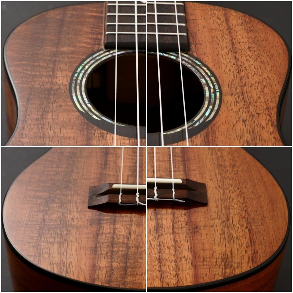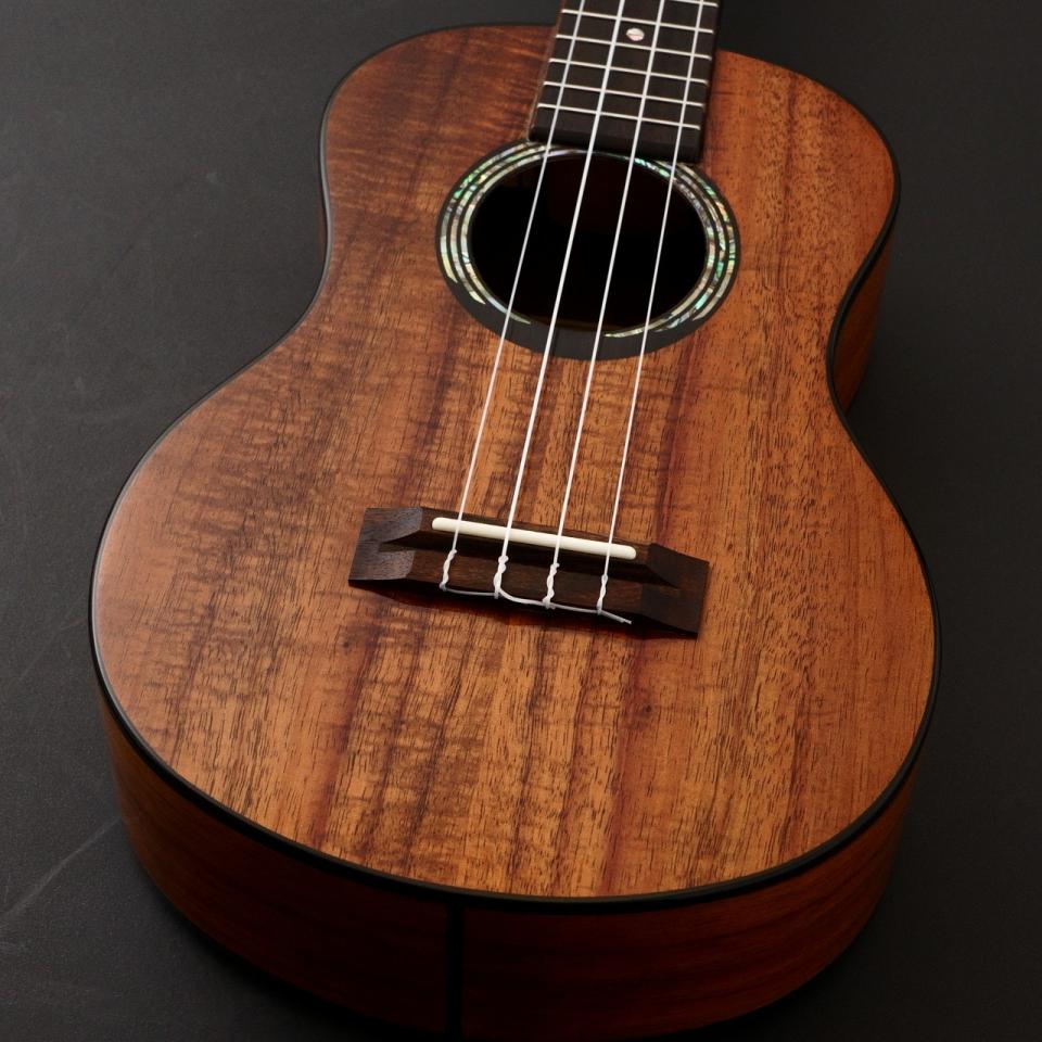 光沢のある塗装が高級感を醸し出し、美しいハワイアンコアの杢目が際立ちます。
