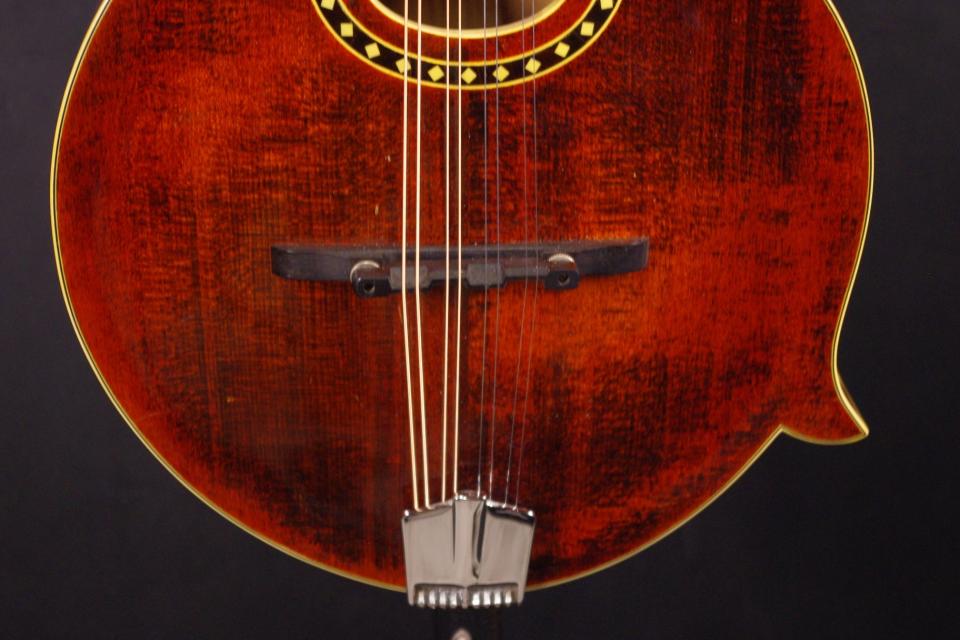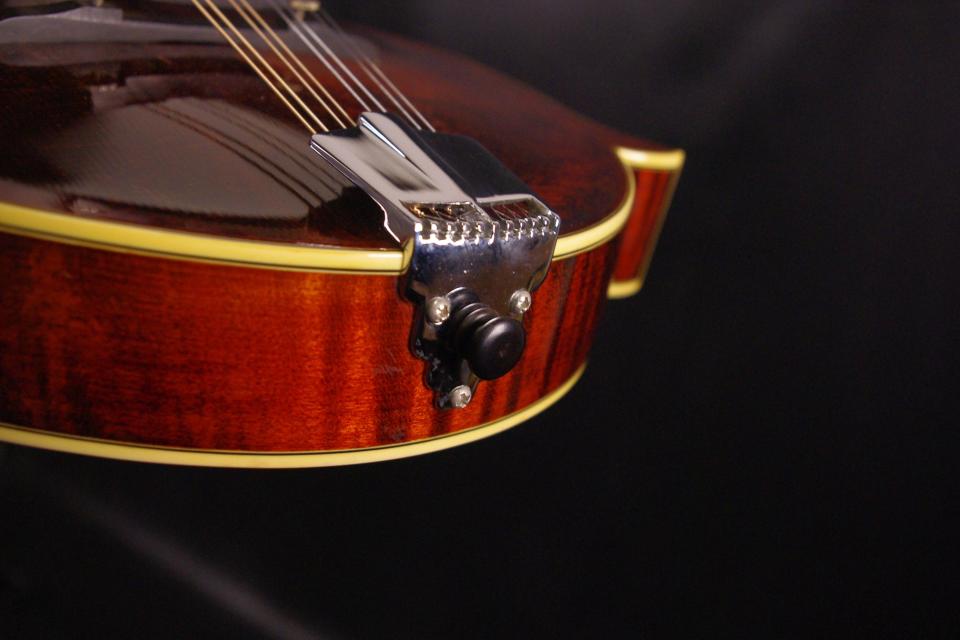 コストパフォーマンスに優れたイーストマンのマンドリン MD-814が入荷しました!!トップには木目の詰まったスプルース、サイドバックとネックには美しいフレームメイプル、指板とブリッジにはエボニー、スクロール、オーバルホールを採用したFスタイルのマンドリンです。ペグ、ブリッジ、テールピースなど主なパーツはオリジナルで残っていました。ストラップピン、ピックアップなど特別な加工もございません。使用感はありますが目立った傷のない美品で演奏性、サウンドも優れています。弦長は約355mm、ナット幅は約28.5mm、ネックのアングルも理想的でトラスロッドの動作も問題なく機能しています。フレットは少々の減りはでていますが長期で十分お使いいただけます。弦高も押さえやすく調整されていますがお好みに合わせた微調整にもお応えいたします。Fホールと比べると温かく豊かな響きが特徴で手軽にお楽しみいただけます!探していた方は是非この機会にお試しください!オリジナルハードケース付き
