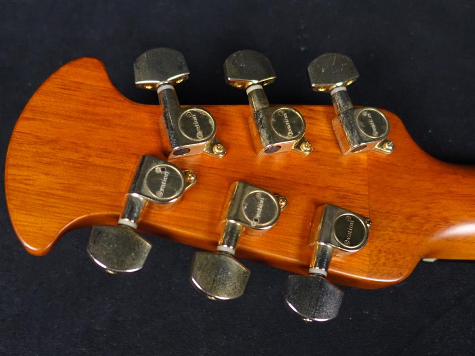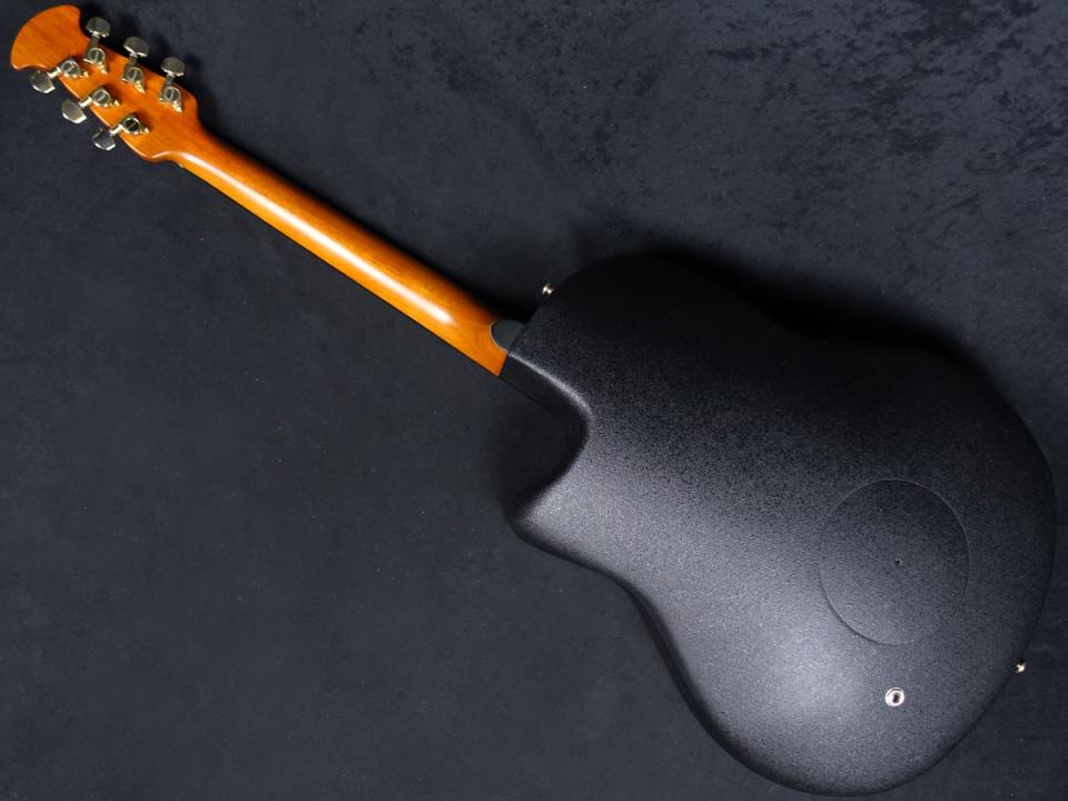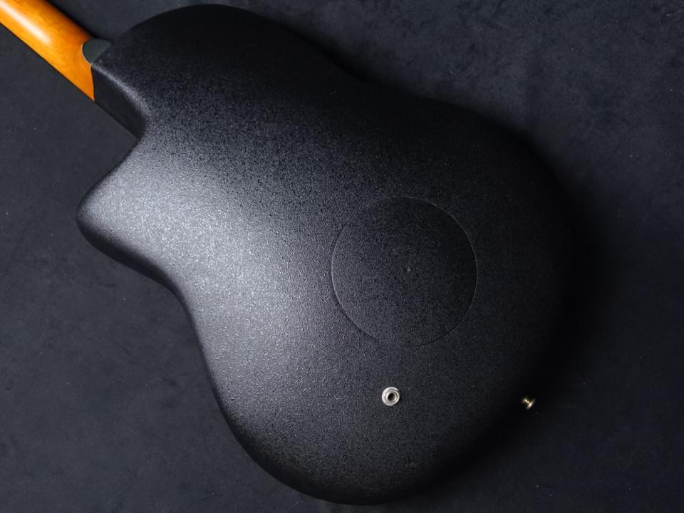 トップ材は美しい木目を持つフィギュアドコア、サイド/バック材はオベーションの代名詞でもあるリラコードと呼ばれる合成樹脂を採用。