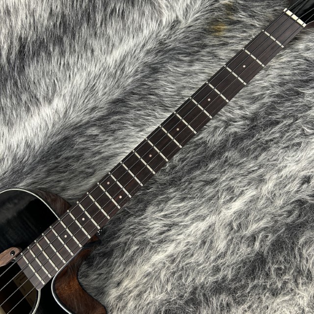 フィンガー・レストが装備されたエレアコ・ベース。ボディ・トップにフレイム・メイプルを採用。