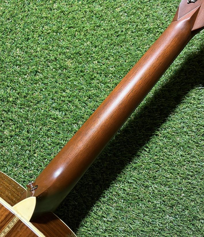 ボディトップには若干の膨らみが見られますが現状で12フレット上の弦高は6弦側が約2.3mm、1弦側が約1.7mmと理想的なセッティングで演奏性も申し分ありません。