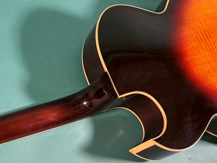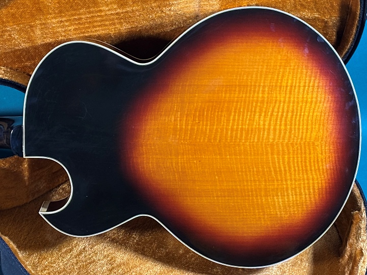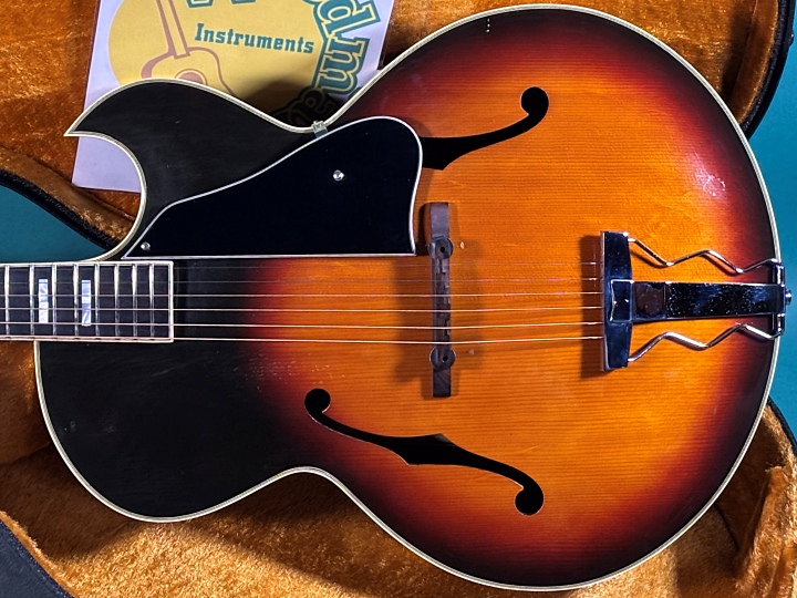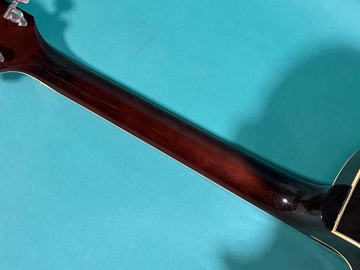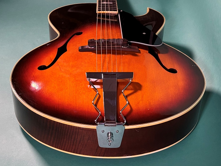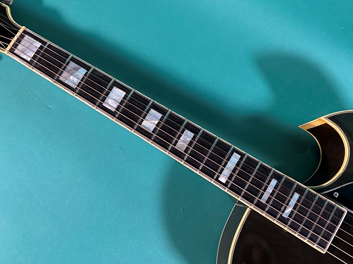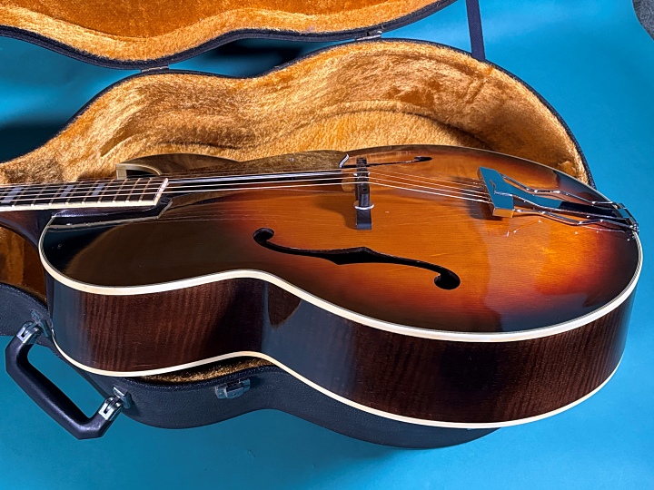 渋い泥臭い味のトーン、大味な箱鳴りの17インチフルボディーのアコースティックアーチトップです。