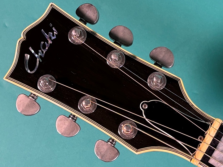 チャキギターは戦後間もない1947年、茶木純啓氏により京都で創業されたとあります。かなり歴史の深いブランドで、コントラバスを中心に弦楽器の製造・販売・修理を行っていたようです。1960年代中期にはアーチトップギターの制作をはじめています。