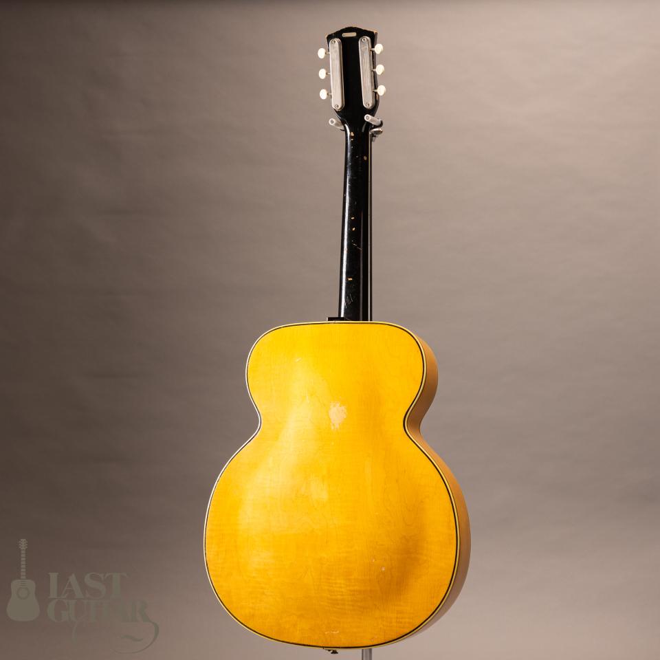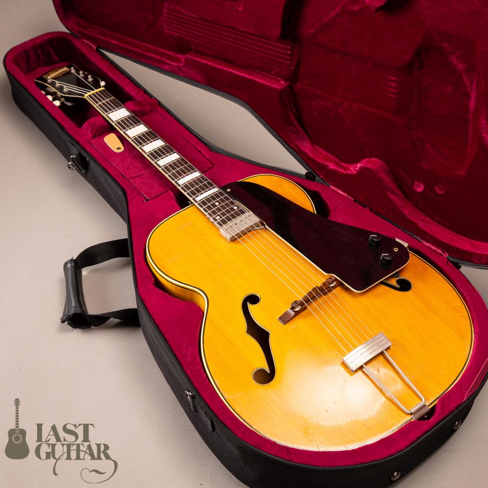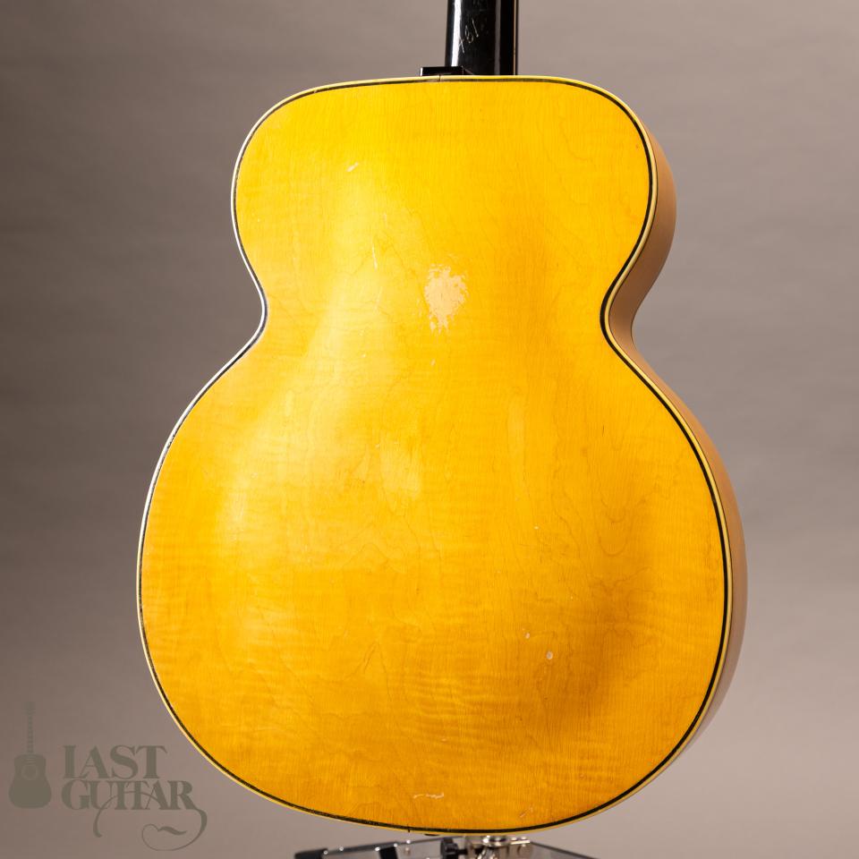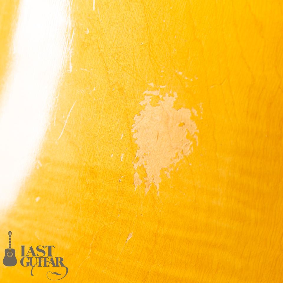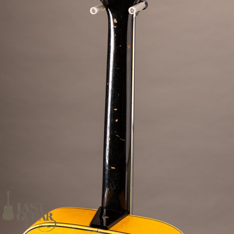 1950年代の楽器としましては、ウェザーチェックや塗装剥がれ等ございますが、現状問題なく演奏でき、全体的に内容は良いと思います。年式につきましては、ヘッド裏に取り付けられたプレートに入ったシリアルより判断して1950年製としています。
