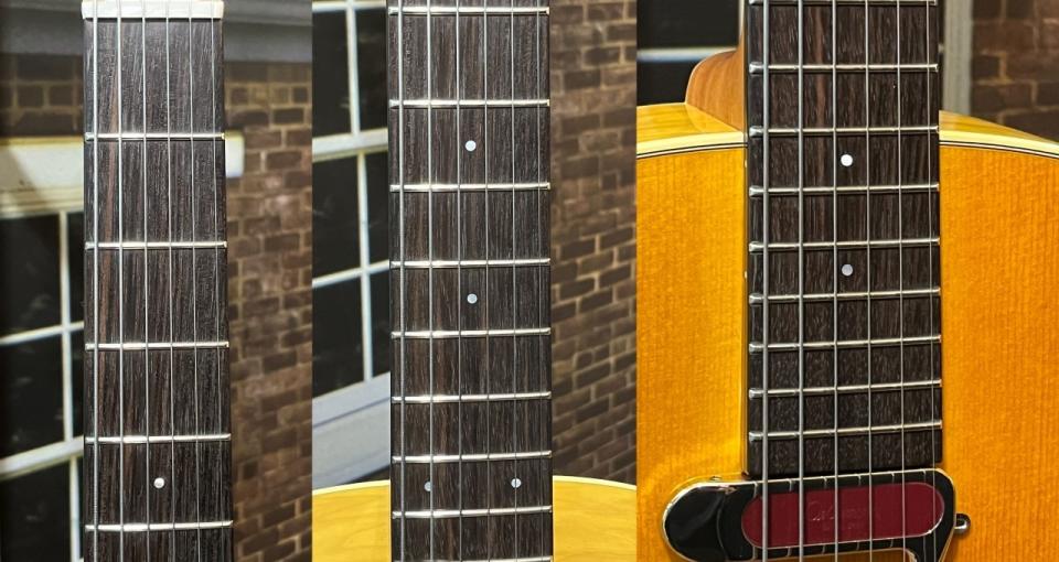 エレキギターアンプに通してエレクトリックに弾くも良し、アコースティックなアンプに通して生ギターのナチュラルなサウンドで弾くも良し、あらゆるシチュエーションで活躍出来そうなギターです。