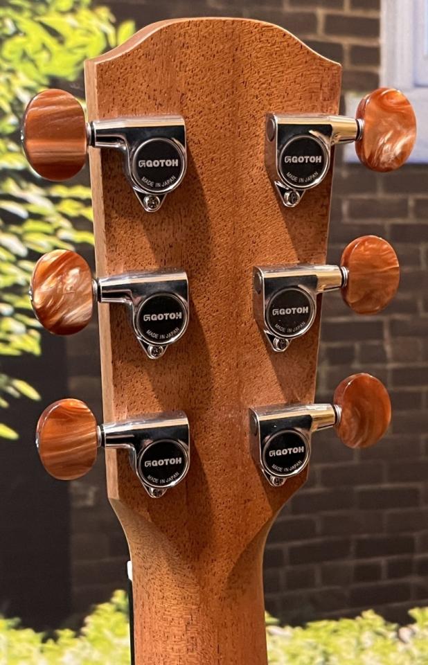 ニューヨーカースタイルの小振りなボディサイズ(ヤイリギターの00サイズくらいです)に635mmスケールを採用したモデル。14フレットジョイント仕様、ソリッドヘッド、表板に伝統的な木材加工の【浮造り仕上げ】が施された人気のモデル。