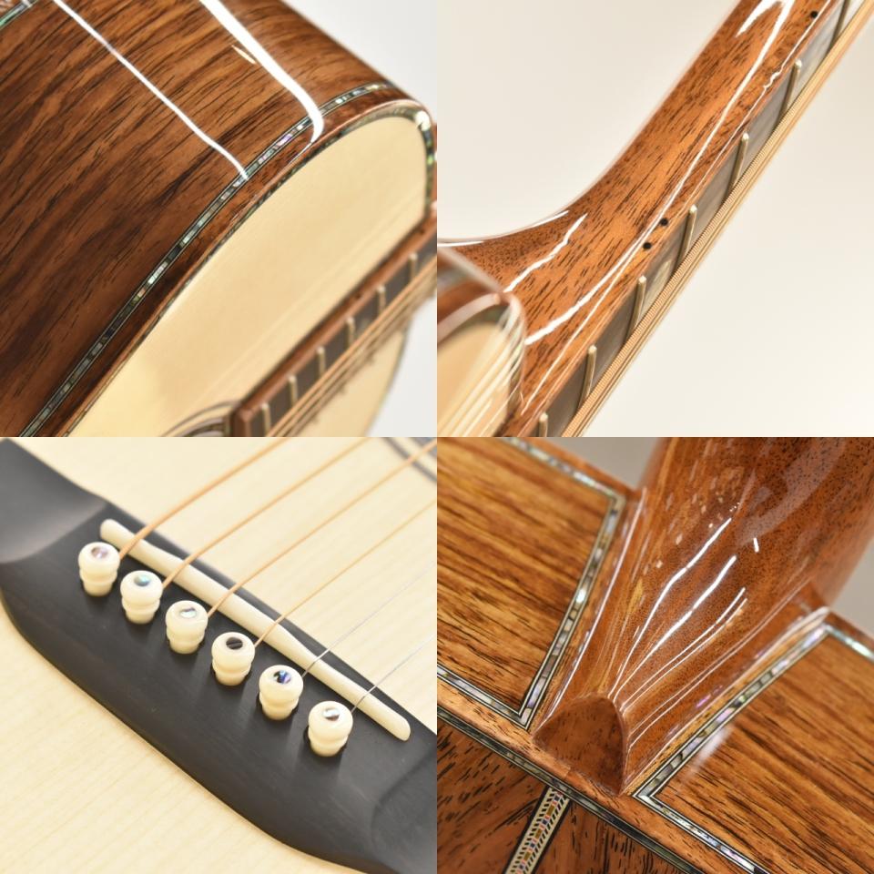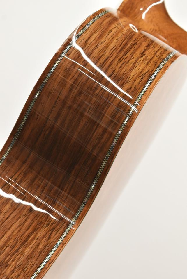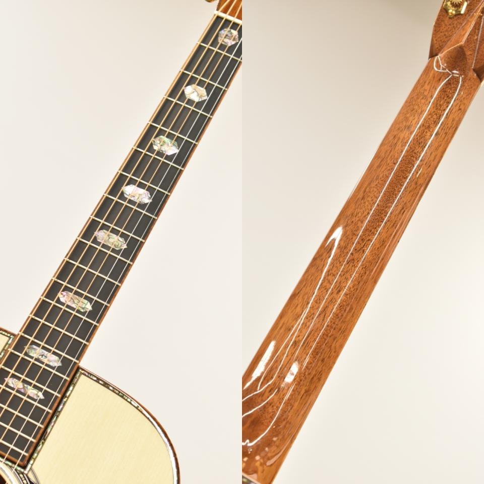 深いくびれと薄胴の000シェイプとショートスケールの弦長は演奏性も高く、ストロークはもちろん、フィンガーピッキングで唄うように鳴らしても心地よく鳴らせます。