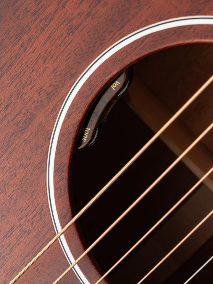 L.R. Baggs VTCシステムはサウンドホール内にボリュームとトーン・コントロールを備え、演奏者が素早く簡単に操作できる一方で、観客からはほとんど操作部が見えません。