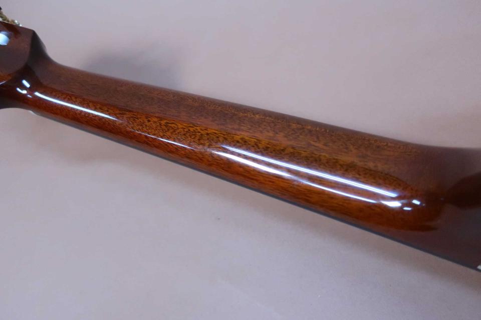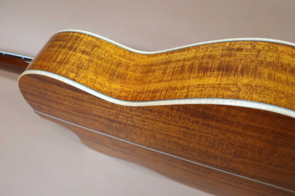 サウンドはトプ材で有るあジャーマンスプルースならではのハイ域が有り、粒立ちの良いレスポンスはコア材ならではの音の立ち上がりと高音域の華やかな鳴りも魅力です。またカッタウェイ仕様でソロプレイなどジャンルを選ばず演奏性も抜群なエレガットモデルです。