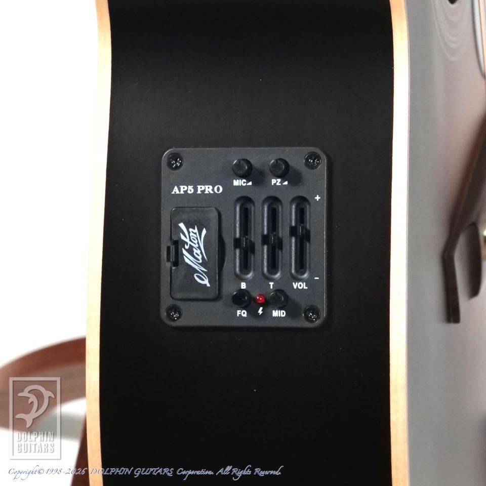 PUシステムはメイトン社オリジナルのAP5 Pro。アンダーサドルPUとコンデンサーマイクを併用する事により、エアー感に加えボディヒット音もアウトプットし、リアルなアコースティックサウンドを出力します。