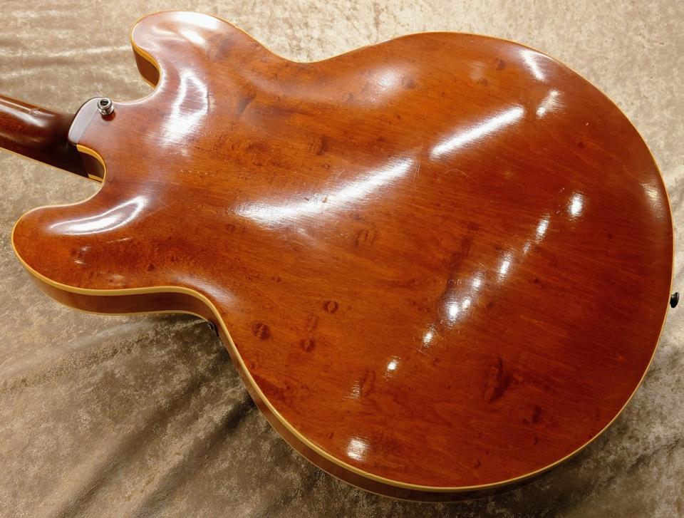 アンプを通した際の暖かみのあるヴィンテージサウンドはもちろん、フルアコですので生音でも楽しめます。