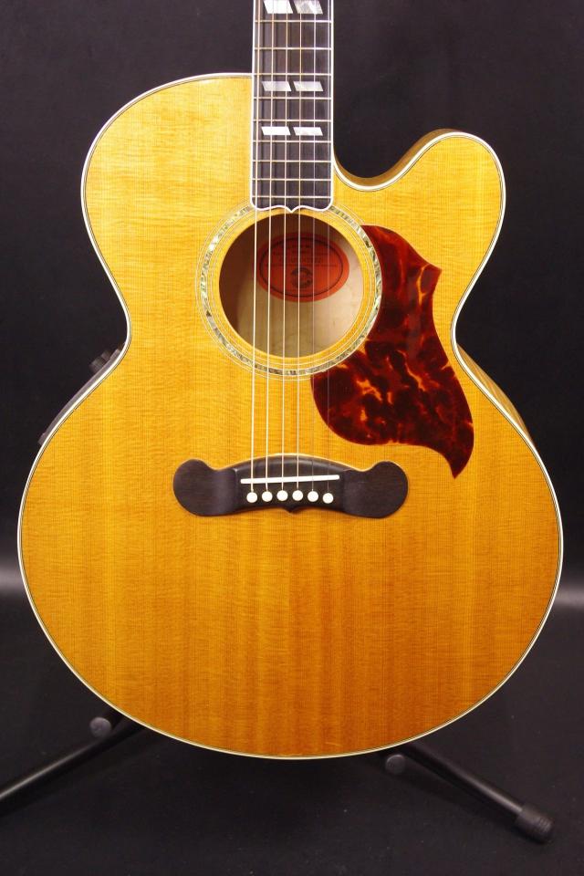 1998年製のギブソン EC-30 BKEが入荷しました!トップはスプルース単板、サイドバックにはメイプル材、指板とブリッジにはエボニーを採用、1997年から生産開始されたモデルでEC-30としては1998年まで、その後J-185ECと改名されますがヘッドのインレイを除いてはほぼ同じスペックとなります。グローバー製のロトマチックペグ、べっ甲柄ピックガード、個性的なブリッジなど主なパーツもオリジナルで残っていました。ネックヒールへはストラップピンが打ってあります。FISHMANのオンボードプリアンプが新品時から搭載されておりライブでもお楽しみいただけます。セミジャンボボディにカッタウェイ仕様で扱いやすいモデルです!ブリッジに沿って若干の塗装の浮きがありますが気にならない程度です。細かい傷、使用感はありますが特別に目立った傷の無い綺麗な個体で演奏性も優れています!ナット幅は約44mmのやや薄めのグリップです。ネックのアングルも理想的でトラスロッドの動作も問題なく機能しています。オリジナルのフレットで減りも少なく長期で気にしないでお使いいただけます。弦高は12フレット6弦側で約2.8mm、1弦側で約1.7mmの高さで押さえやすく調整済みです。お好みに合わせた微調整にもお応えいたします!メイプルボディの硬質で煌びやかなサウンド!サイドバックは合板ですがアーチバックの影響もあり豊かでバランスもよく気持ちよく広がります!是非この機会にお試しください!オリジナルハードケース付き。