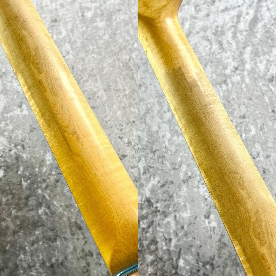 ネックバックは塗装が部分的になくなっており、木地が露出しており、本ブランドの塗装の薄さの証明はもちろん、それだけ愛用されてきた証とも言えます。